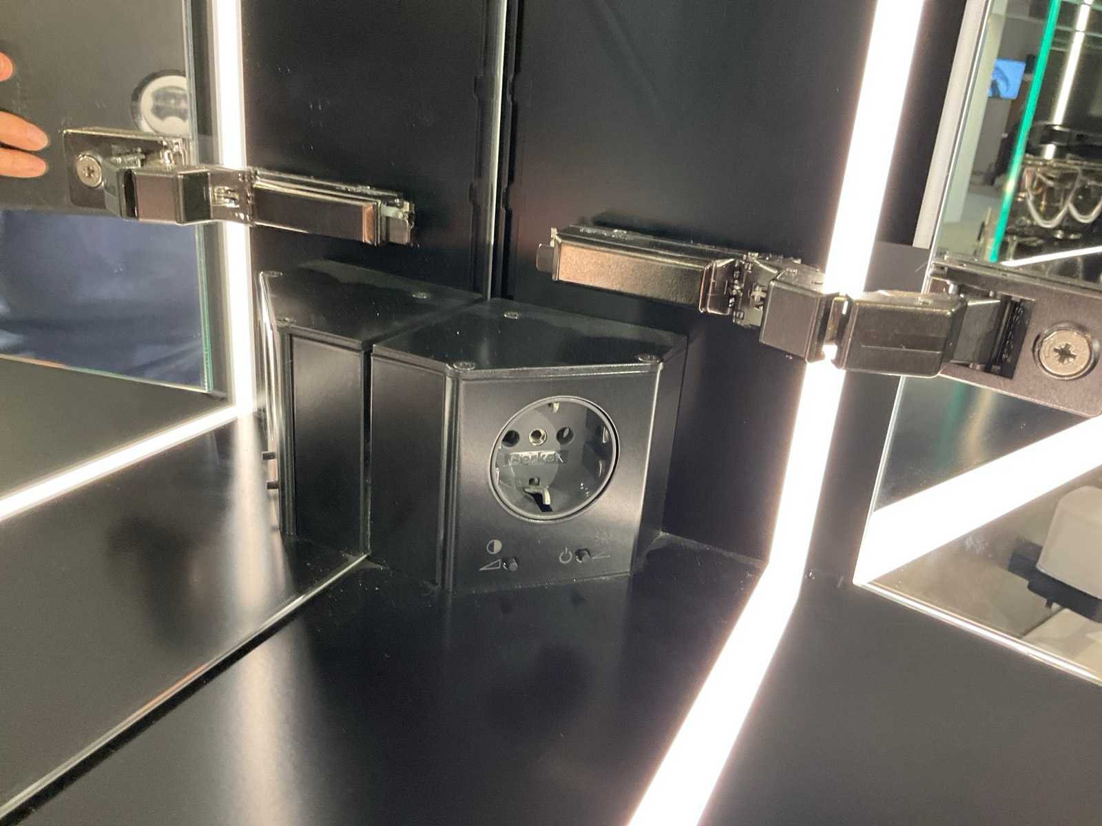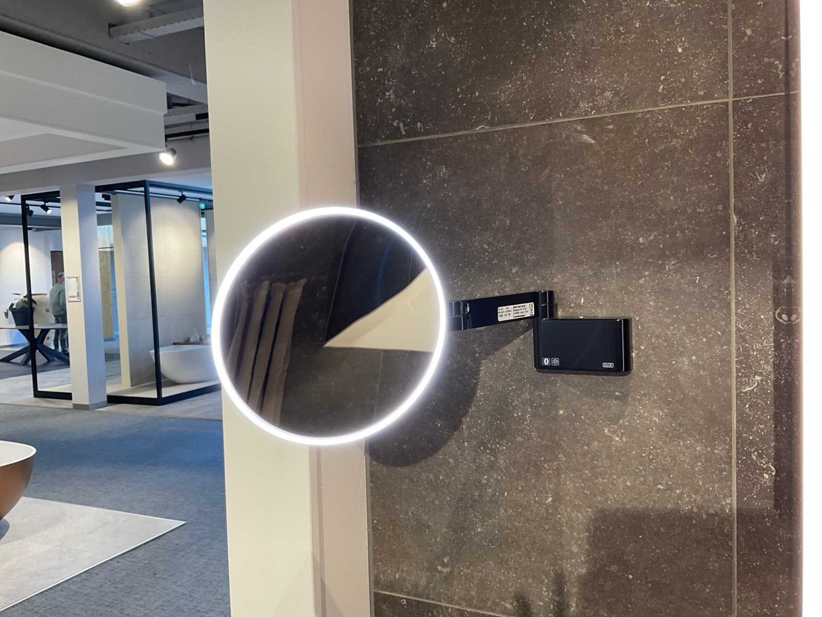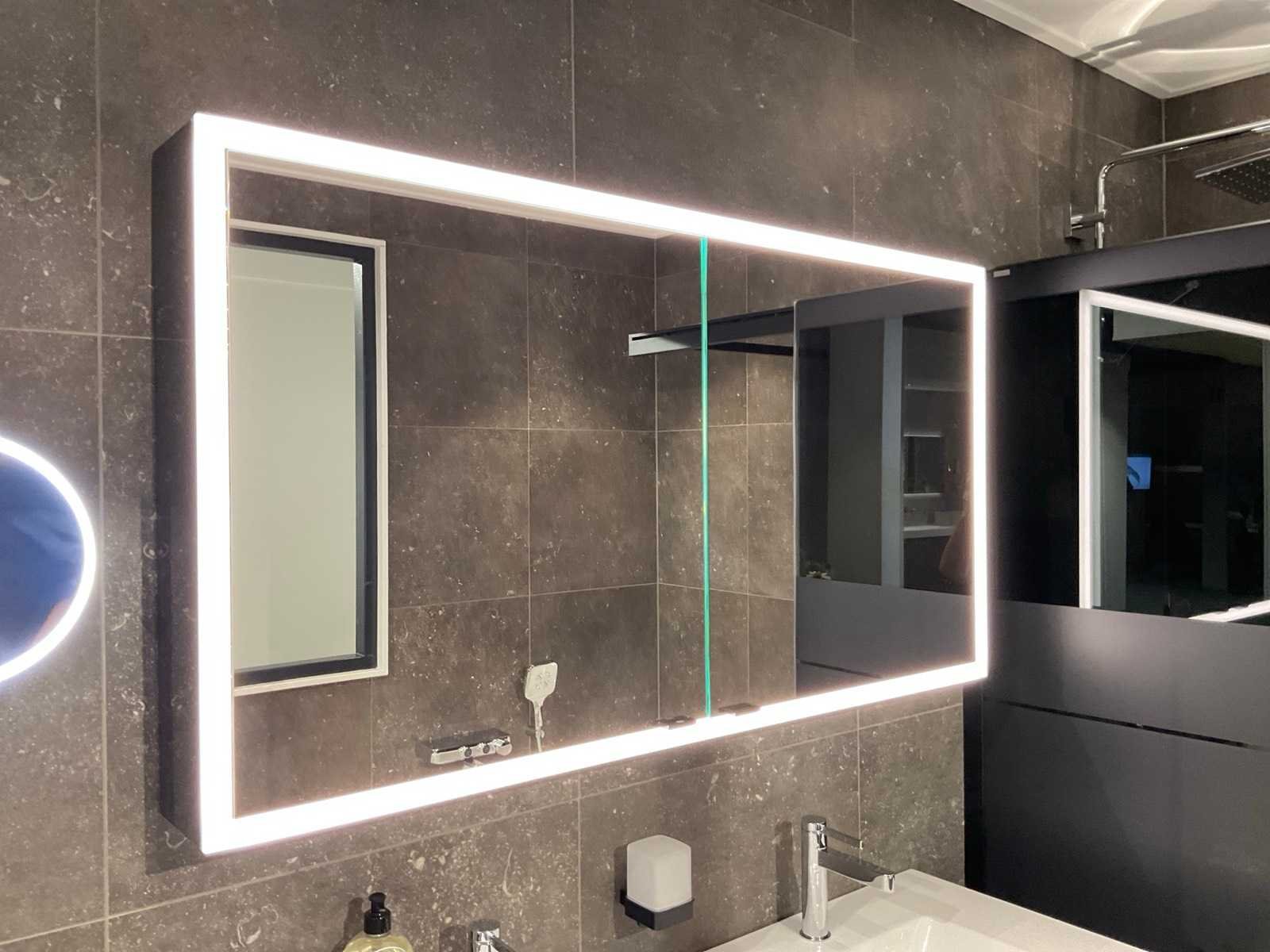 2 dubbelzijdige spiegeldeuren met 2 glazen legplanken; achterwand spiegel; 2 wandcontactdozen; scheerspiegel diameter 21 cm; LET OP: door koper zelf ter plaatse nog te demonteren; zonder de getoonde accessoires Nee Merk: Emco Lengte: 130cm Breedte: 150cm Hoogte: 70cm