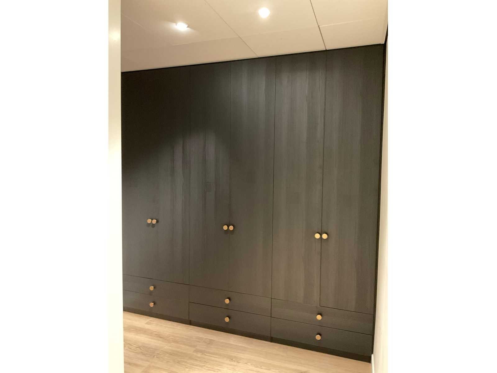 Bestaande uit 3 sectie waarvan 2 stuks hang-legkast met laden en 1 legkast met laden; LET OP: door koper zelf ter plaatse nog te demonteren; zonder de getoonde accessoires Nee Kleur: black houtdecor Breedte: 267cm Hoogte: 265cm Diepte: 61cm