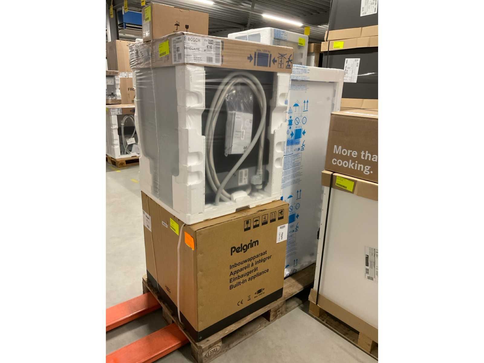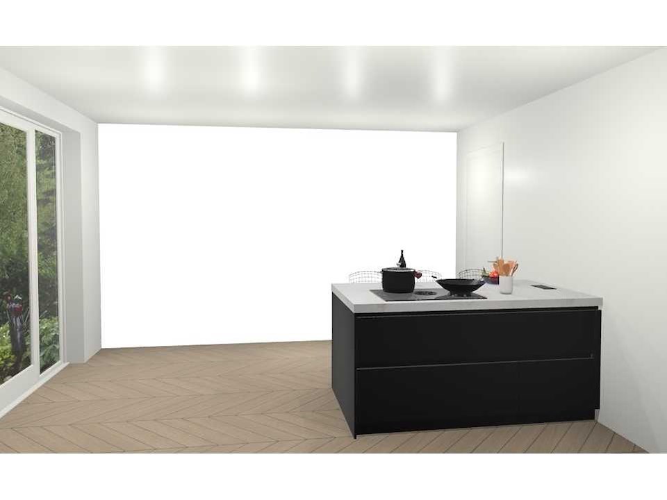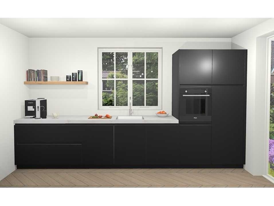 Indeling kookeiland: 2 ladenkasten waarvan 1 met binnenlade; barzitdeel; Indeling wandopstelling met spoeldeel; 2 onderkasten; 1 ladenkast met binnenlade en bestekinzet; 2 hoge kasten; wandplank met onzichtbare bevestiging afm. 125x25x6 cm; Apparatuur: Bora inbouw inductie kookplaat met kookveldafzuiging; type Puru; Pelgrim inbouw oven met magnetron; type COM316GLS; inhoud 72 liter; Bauknecht inbouwkoelkast; type KSI14VS2; cap. 241 liter; Evoline Backflip inbouw stopcontact met USB poort; Bosch inbouwvaatwasser; type SMV4ECX10E; 13 couverts; LET OP: keuken wordt geleverd in verpakking op 3 pallets; er staat geen showmodel opgesteld; zonder de transportwagen Nee Merk: Schüller Lengte: 432cm Kraan: Quooker 3-in-1 kokendwater kraan Flex met Combi+ 7 liter waterreservoir Gootsteen: Reginox New Jersey vlakinbouw Aanrechtblad: Kemie Just Luxury Stone Statuario Venato Glans Hoofdkleur: Onyxzwart mat