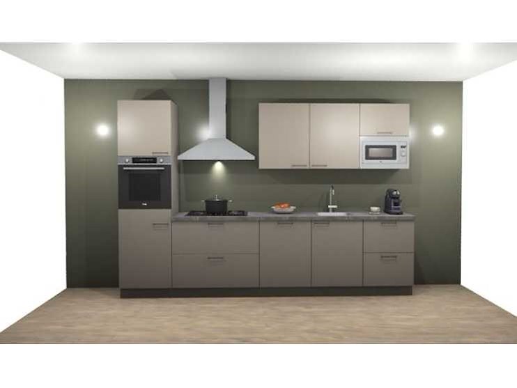 Indeling: 3 bovenkasten en 3 onderkasten; w.o. 2 laden; soft-close; 1 hoge zijkast; Whirlpool inbouw 5-pits gaskookplaat; type AKR3291/IX; Whirlpool rvs wand afzuigkap; type WHCN94FLMX; Indesit inbouw magnetron; type MWI120sx; Indesit inbouwoven; type IFW3844 H IX; Etna inbouw vaatwasser; type VW149M; Siemens inbouw koelkast; type KI21R2FEO; cap. 136 liter; Let op: keuken wordt geleverd in verpakking op 3 pallets; er staat geen showmodel opgesteld! Nee Merk: Schuller Type keukenopstelling: rechtopgesteld Lengte: 341cm Kraan: eengreeps Gootsteen: opbouw Aanrechtblad: met hardkunststof toplaag kleur schelpenkalk grijsbruin imitatie Hoofdkleur: kiezelgrijs mat