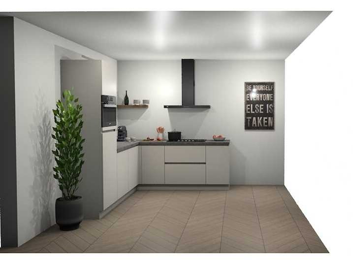 Indeling: 1 hoge kast; 4 onderkasten waarvan 1 ladenkast en 1 hoekkast; wandplank afm. 650x175x60 mm; inbouwapparatuur: Pelgrim 4-pits gaskookplaat; type GK4075Mat; Bauknecht wandschouw afzuigkap; type DBIBS93FLLK; WHirlpool inbouw combimagnetron; type AMW9605NB; inhoud 40 liter; Bauknecht inbouwkoelkast; type KSI9VS1; inhoud 131 liter; Whirlpool inbouwvaatwasser; type WIE2B19N; Let op: keuken wordt geleverd in verpakking; er staat geen showmodel opgesteld Nee Merk: Schüller Lengte: 245cm Breedte: 235cm Kraan: eengreeps Gootsteen: Reginox Colorado Aanrechtblad: met hard kunststof toplaag kleur Schelpenkalk grijsbruin Hoofdkleur: Schelpenwit Mat