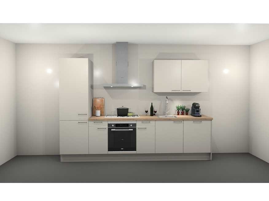Indeling: hoge kast; 3 onderkasten; 1 bovenkast; inbouwapparatuur: Whirlpool 5-pits gaskookplaat; type AKR3291/IX; Indesit wandafzuigkap; type IHBS94LMX; Indesit inbouwoven; type IFW 3844HIX; inhoud 71 liter; Wirlpool inbouwkoelkast; type ARG7181; inhoud 209 liter; Whirlpool inbouwvaatwasser; type WIE2B19N; Let op: keuken wordt geleverd in verpakking; er staat geen showmodel opgesteld Nee Merk: Schüller Lengte: 323cm Kraan: eengreeps Gootsteen: Reginox colorado Aanrechtblad: met hardkunststof toplaag kleur Oud eiken Provence imitatie Hoofdkleur: Schelpenwit