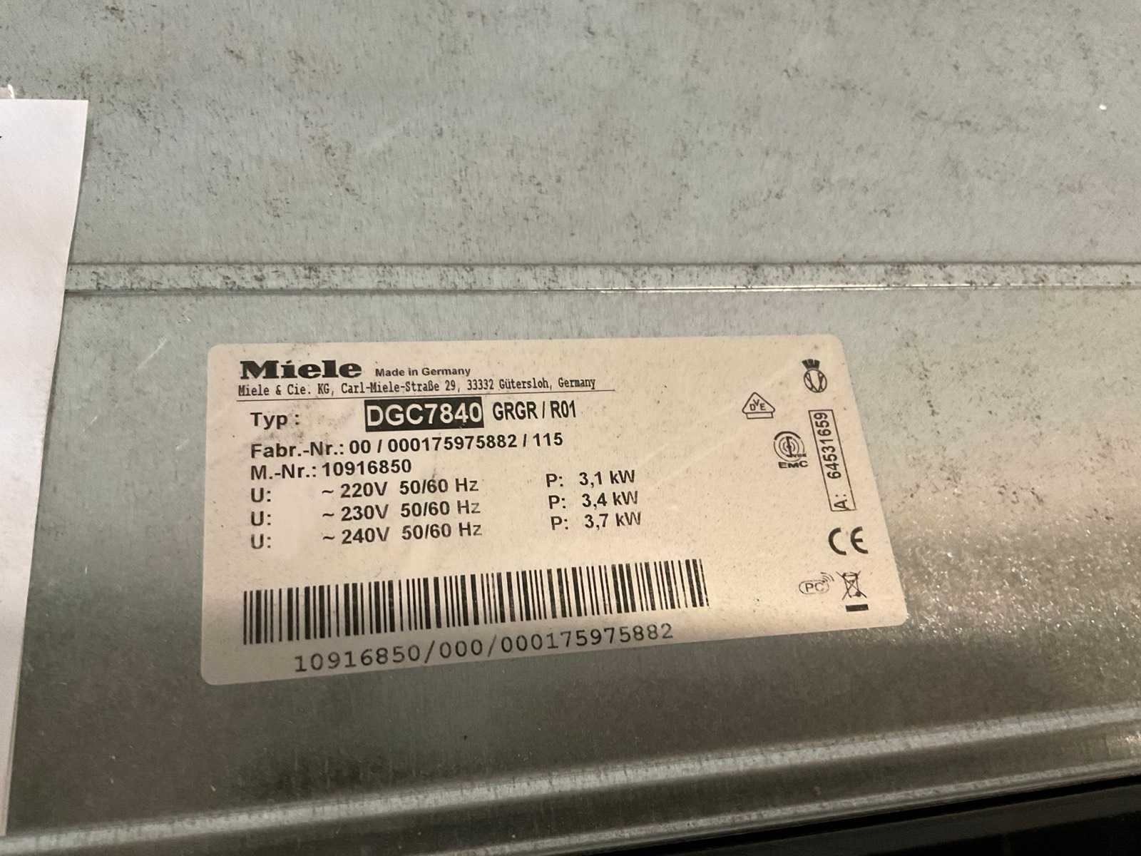 DualSteam; HydroClean; Miele@home Nee Merk: Miele Model: DGC 7840 GR/GR Totaal netto inhoud: 47l Kleur: Grafietgrijs Lengte: 59cm Breedte: 56cm Hoogte: 45cm