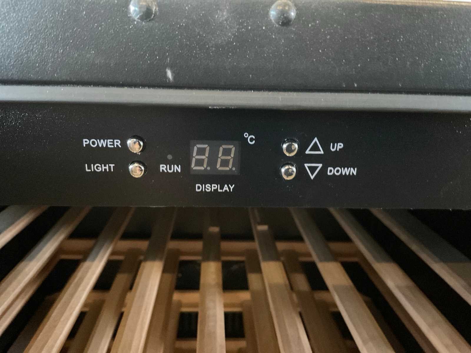1 temperatuurzone; 6 houten leggers; showroommodel Nee Merk: Dunavox Type: DAU-46.146DSS Kleur: black Capaciteit flessen: 46 Digitale uitlezing: true Regelbare thermostaat: true Vrijstaand: true Totale afmeting L: 595mm Totale afmeting Breedte: 580mm Totale afmeting Hoogte: 800mm