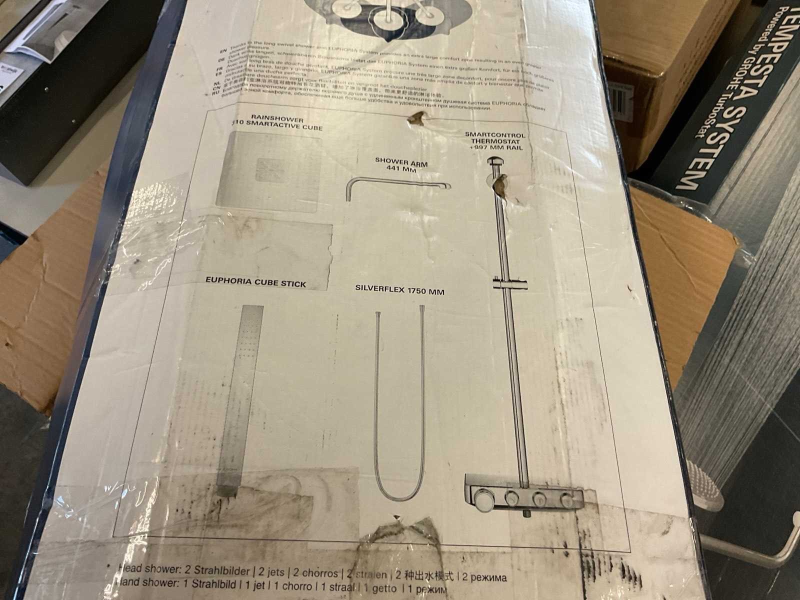 Thermostatische douchekraan; regendouchekop 31x31 cm; handdouche met slang en glijstang; muurbevestiging ontbreekt Nee Merk: Grohe Model: Euphorbia Smart Control