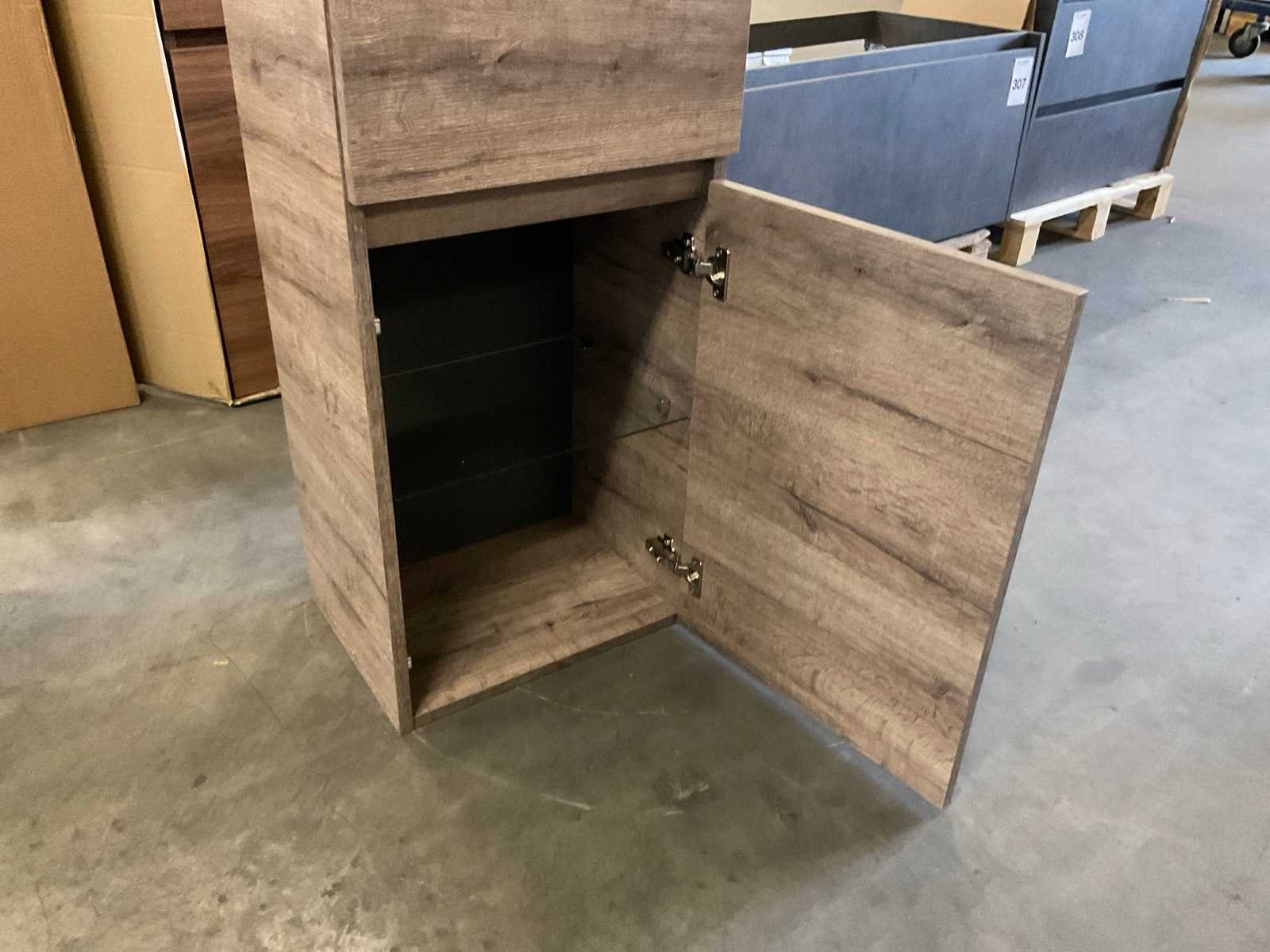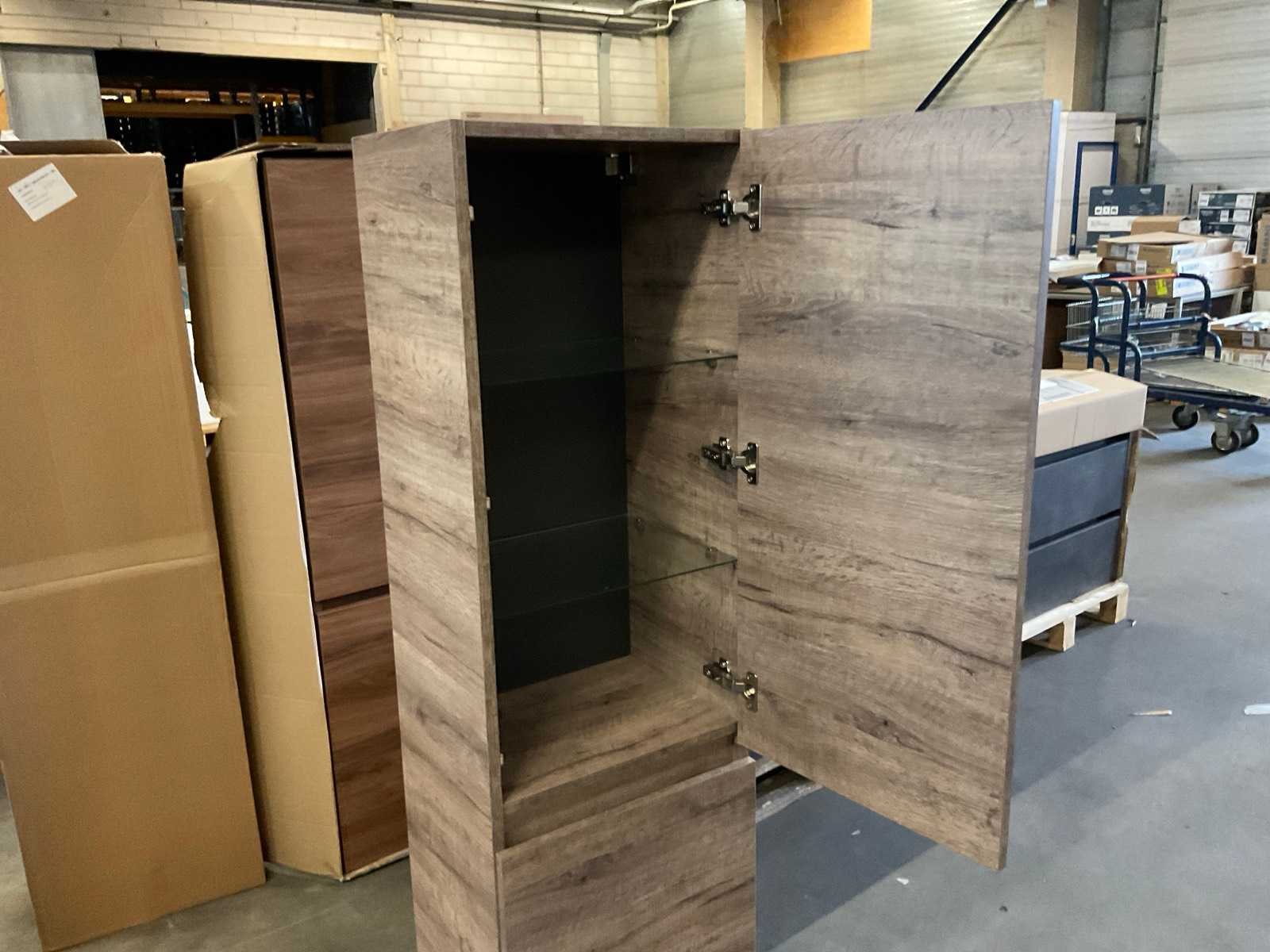 2 deuren; 3 glazen legplanken Nee Kleur: heritage oak decor Lengte: 45cm Breedte: 35cm Hoogte: 160cm