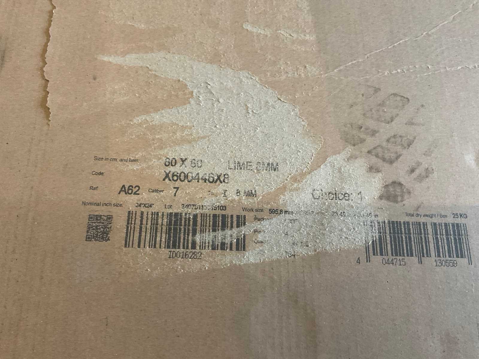 4 tegels per pak; 1,44 m²; totaal 2 pakken; ca. 2,88 m² Nee Merk: Porcelaingres Kleur: Lime Lengte: 600mm Breedte: 600mm Dikte: 8mm