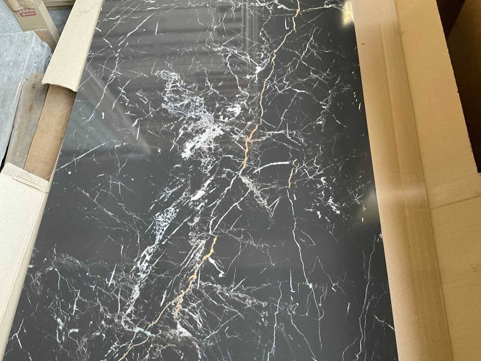 3 tegels totaal ca. 2,7 m² Nee Merk: Porcelanosa Kleur: black multi Lengte: 1500mm Breedte: 600mm Dikte: 10mm