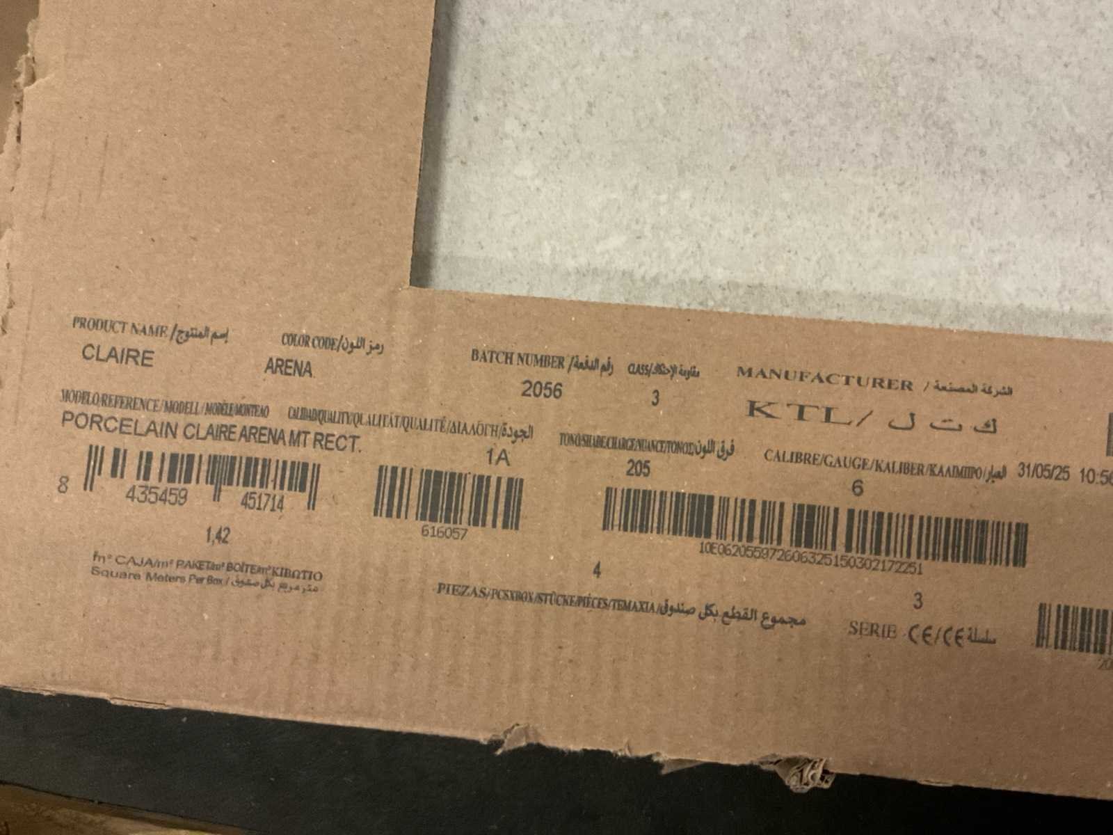 4 tegels per pak; 1,44 m²; totaal 3 pakken ca. 4,32 m² Nee Merk: KTL Kleur: Claire Arena Lengte: 600mm Breedte: 600mm Dikte: 6mm