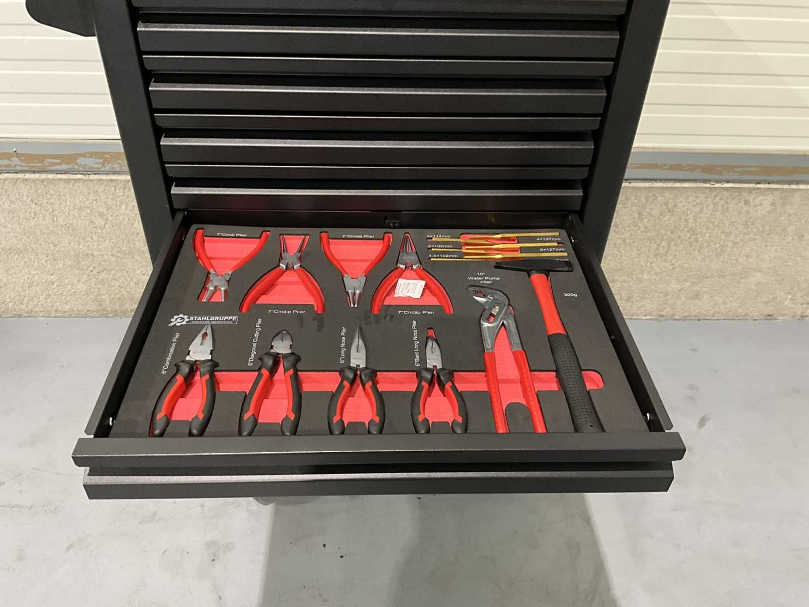 Aanvullende informatie Staat: ongebruikt, in de originele verpakking Merk: SG Tools Aantal laden: 7 laden Aantal gevulde laden: 6 gevulde laden Gereedschap: Chrome Vanadium gereedschap Inhoud: 3 dopsleutelsets (1/2”, 3/8” & 1/4”) bits- en doppenset ( 102 stuks) ring- steeksleutelset (6-32 mm) schroevendraaiers (21 stuks) diverse tangen (9 stuks) T-greep Torxsleutels (T10-T50) T-greep Inbussleutels (2-8mm) Nee Merk: SG Tools Type: SG 15 Pro Bouwjaar: 2025 Met inhoud: true Eigen gewicht: 80kg