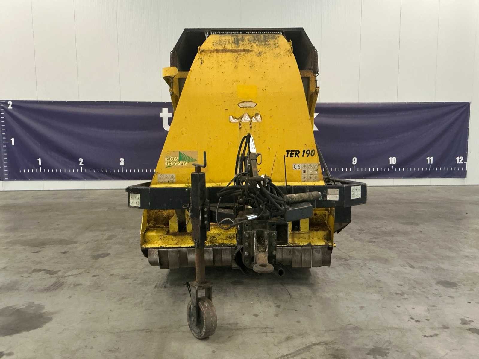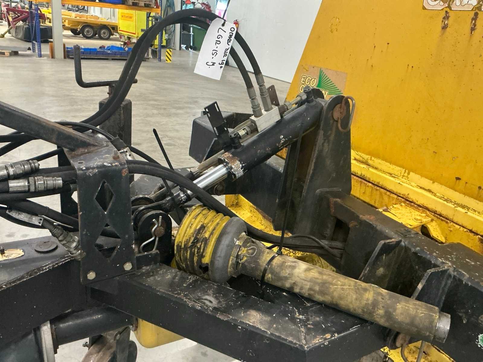 Voorzien van hydraulische sideshift, hoogkipkontainer, hydraulische hoogteverstelling, hydraulische remmen, aktieframe met 4 ledlampen, aftakas aangedreven klepelmaaier en kentekenregistratie. Nee Merk: Omarv Type: TER190: Bouwjaar: 2000 Serienummer: 50419 Werkbreedte: 190cm Opvang container: true Eigen gewicht: 2750kg Totale afmeting L: 700cm Totale afmeting Breedte: 230cm Totale afmeting Hoogte: 280cm