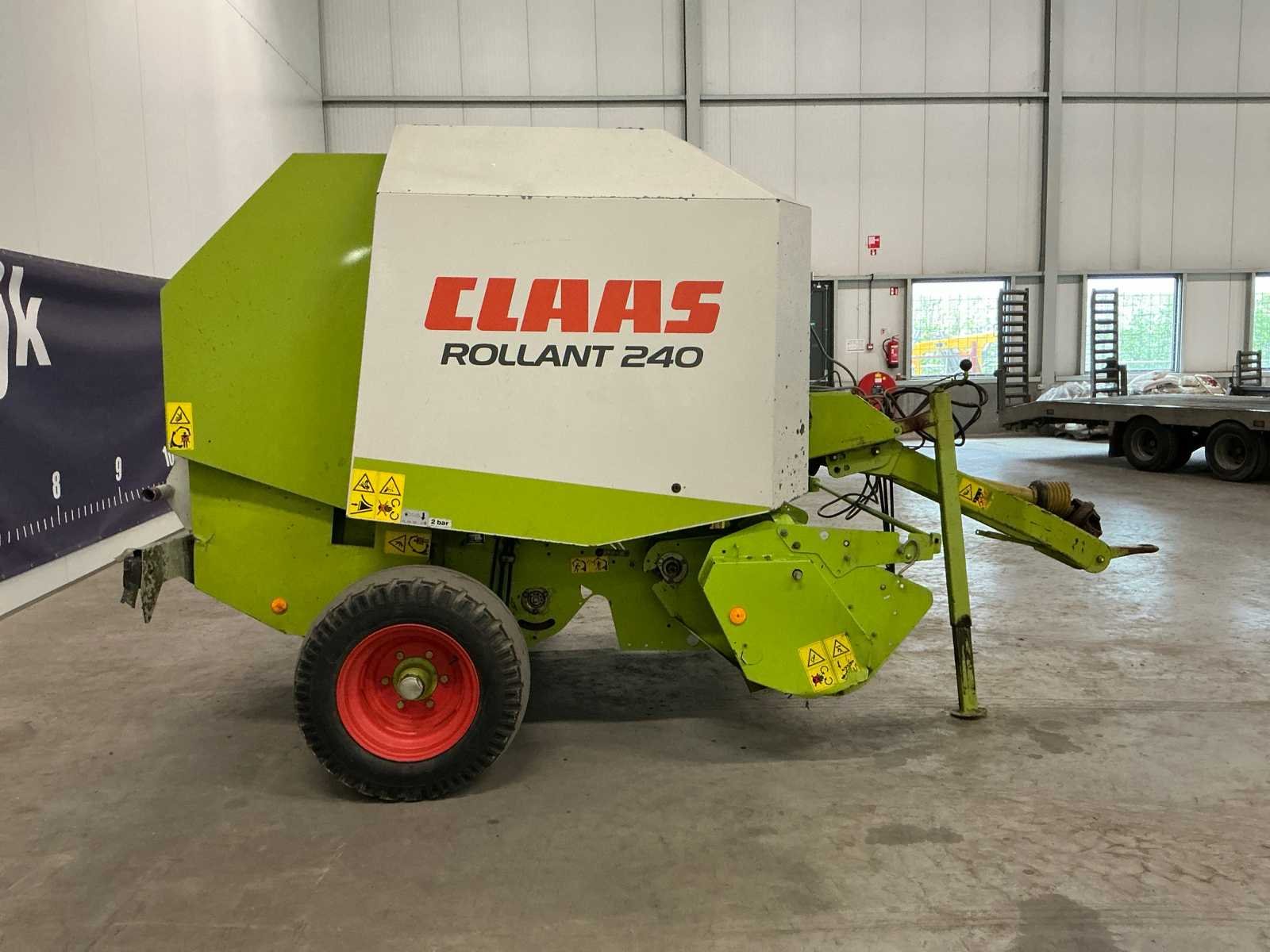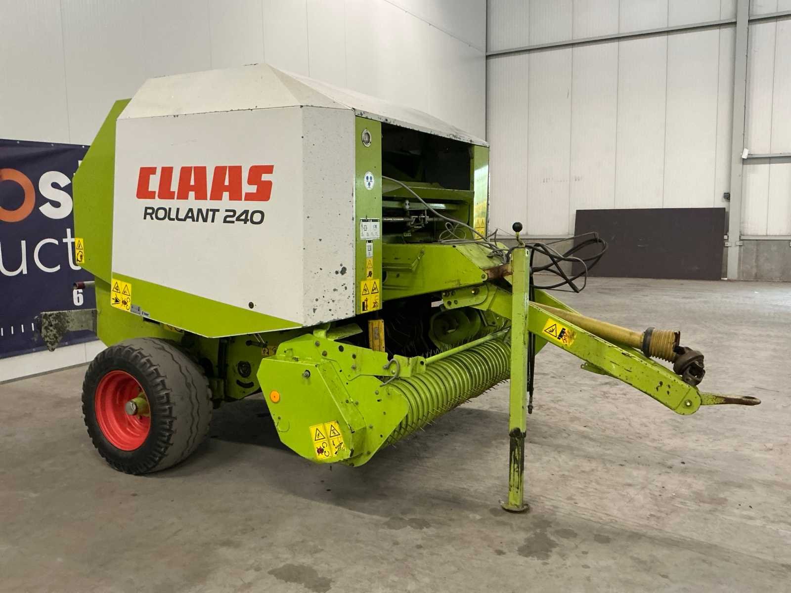 Voorzien van ketting aangedreven pick-up, aftakas, trekoog, pick-up vijzels, Nee Merk: Claas Type: Rolland 240 Bouwjaar: 2004 Serienummer: 74900534 Afgelezen aantal balen: 6949 Werkbreedte pick-up: 2100mm Eigen gewicht: 2970kg Totale afmeting L: 4400mm Totale afmeting Breedte: 2500mm Totale afmeting Hoogte: 2500mm