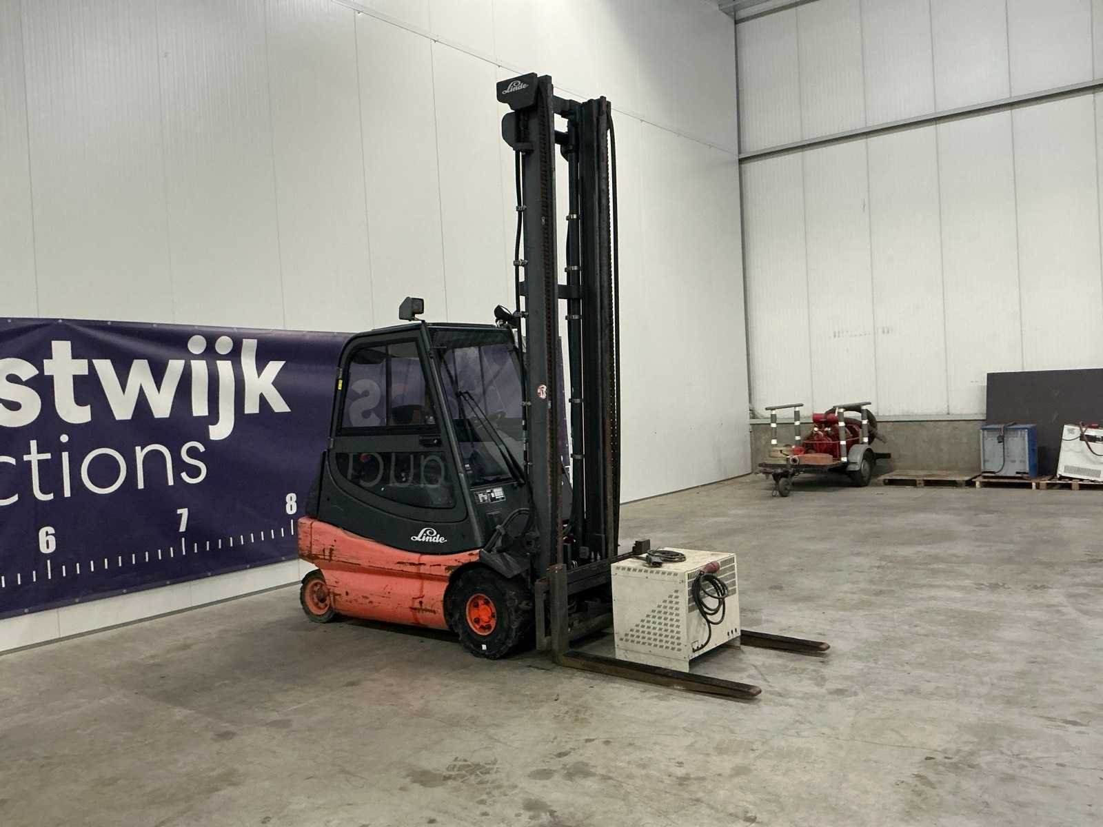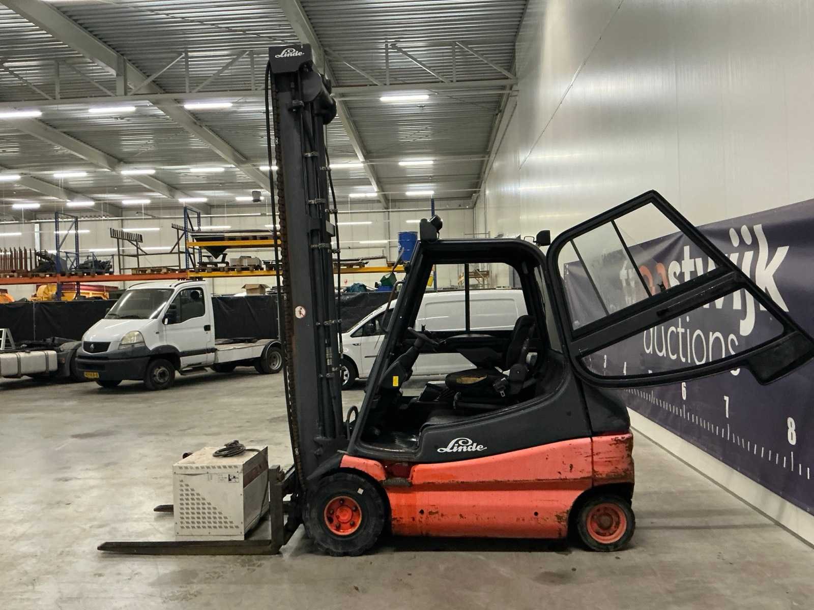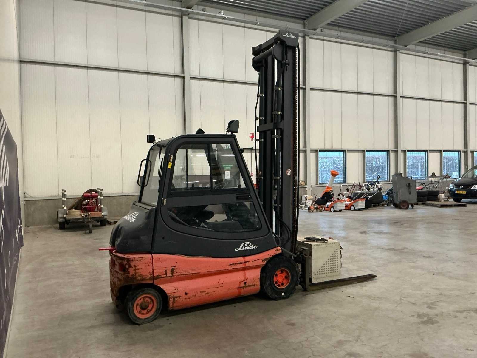 Voorzien van acculader, 2 extra dubbelwerkende functies, werkverlichting, stoelverwarming en standkachel. Nee Merk: Linde Type: E25-02 Bouwjaar: 2004 Serienummer: GLX336R01363 Aantal wielen: 4 Afgelezen urenstand: 9831 Accu lader: true Side-shift: true Duplex mast: true Hefvermogen: 2500kg Lepellengte: 1200mm Hefhoogte: 5550mm Vol rubber banden: true Totale afmeting L: 3750mm Totale afmeting Breedte: 1200mm Totale afmeting Hoogte: 3460mm