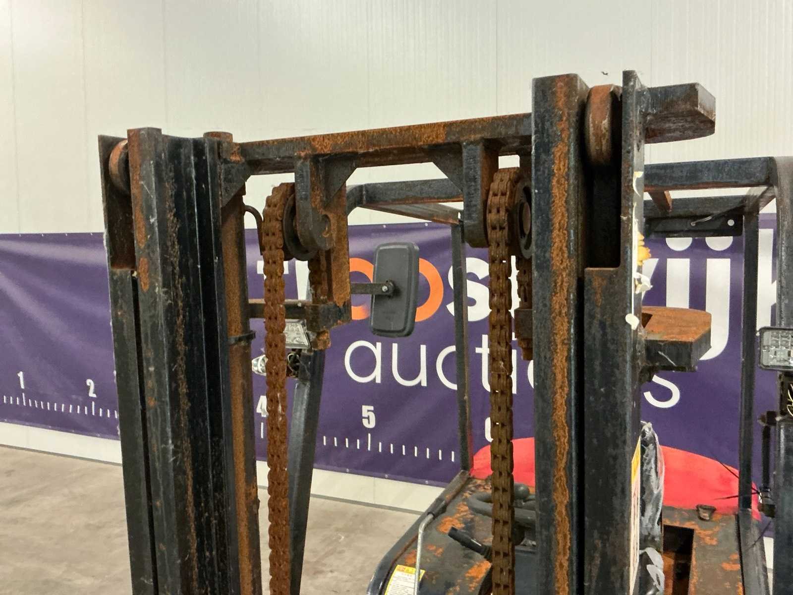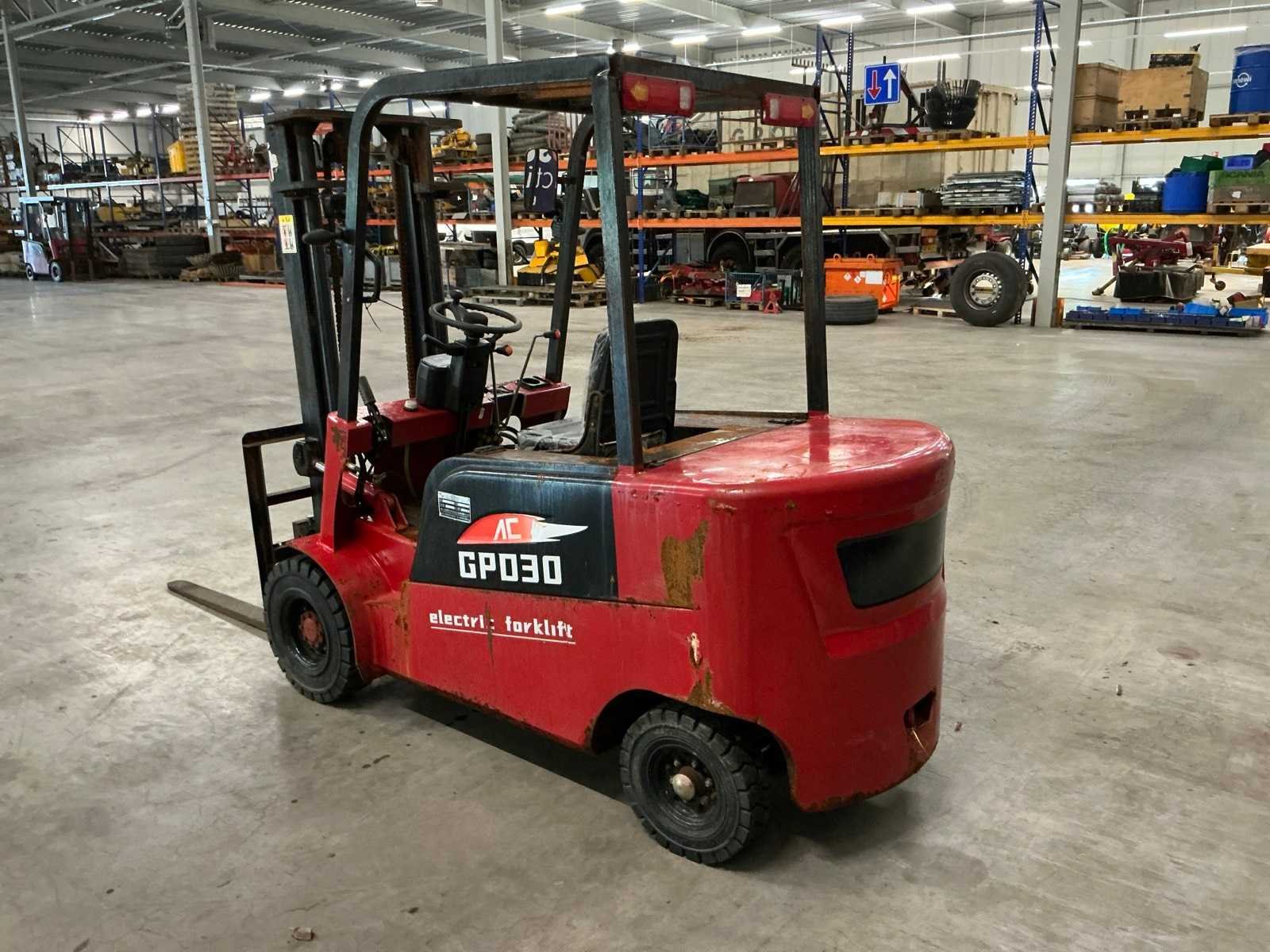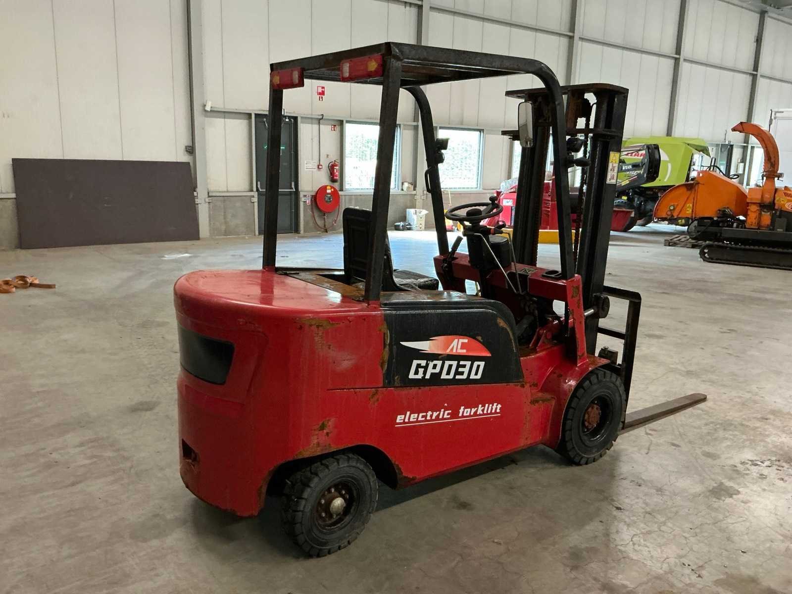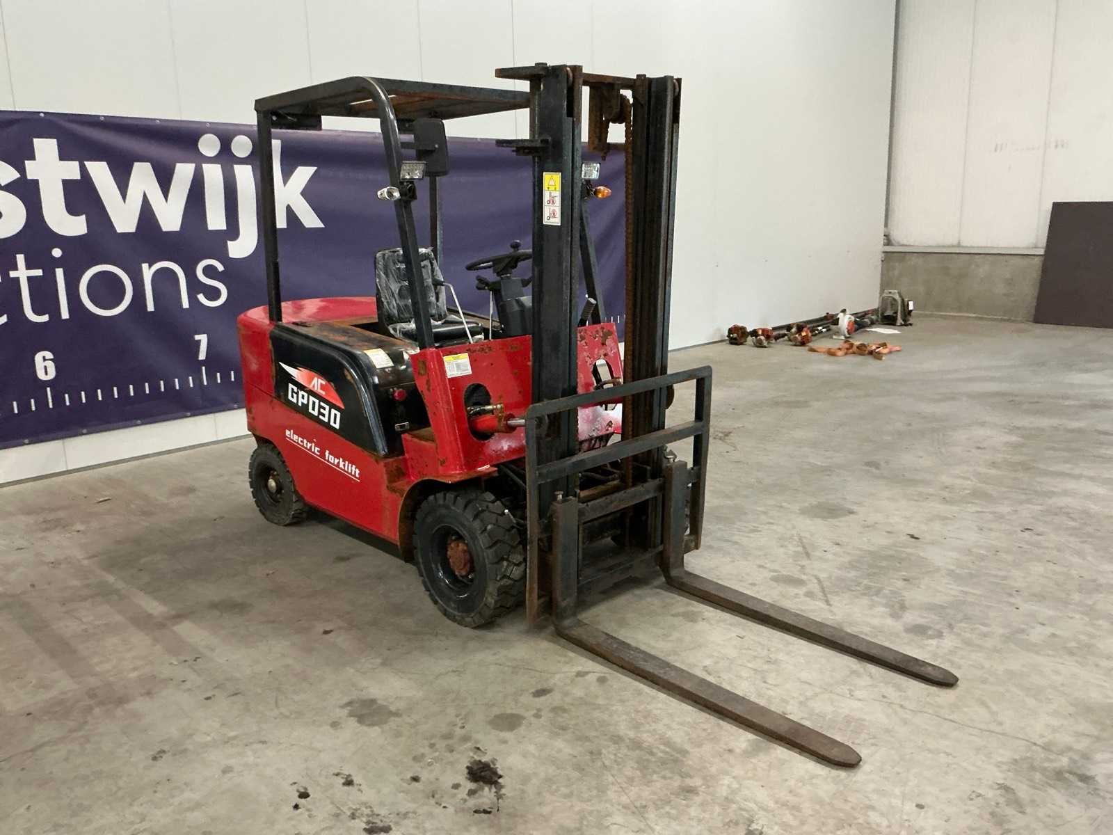 Accu leeg, geen lader Nee Merk: Shandong Rippa Type: GPD30 Serienummer: SLO22129910 Brandstof: Elektrisch Mast: Duplex Soort band: Volrubber banden Aantal wielen: 4 Duplex mast: true Lepellengte: 1200mm Vol rubber banden: true Minimale doorrijhoogte: 2150mm Totale afmeting L: 3850mm Totale afmeting Breedte: 1260mm Totale afmeting Hoogte: 2150mm