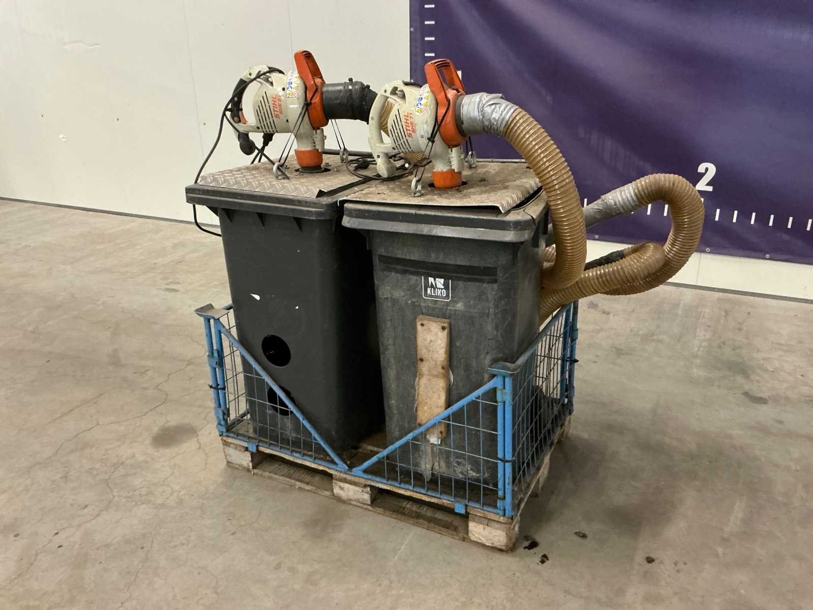 Voorzien van Stihl SHE81, en Stihl SHE71, 2x opvangcontainer. Gebruikt ten behoeve van processierups bestrijding Nee Elektrisch aangedreven: true Zuigfunctie: true Totale afmeting L: 850mm Totale afmeting Breedte: 1230mm Totale afmeting Hoogte: 1550mm