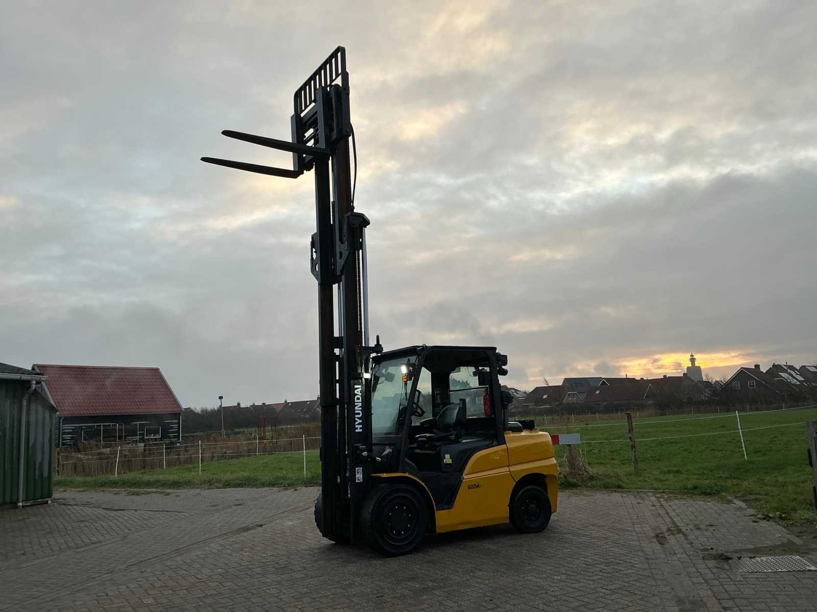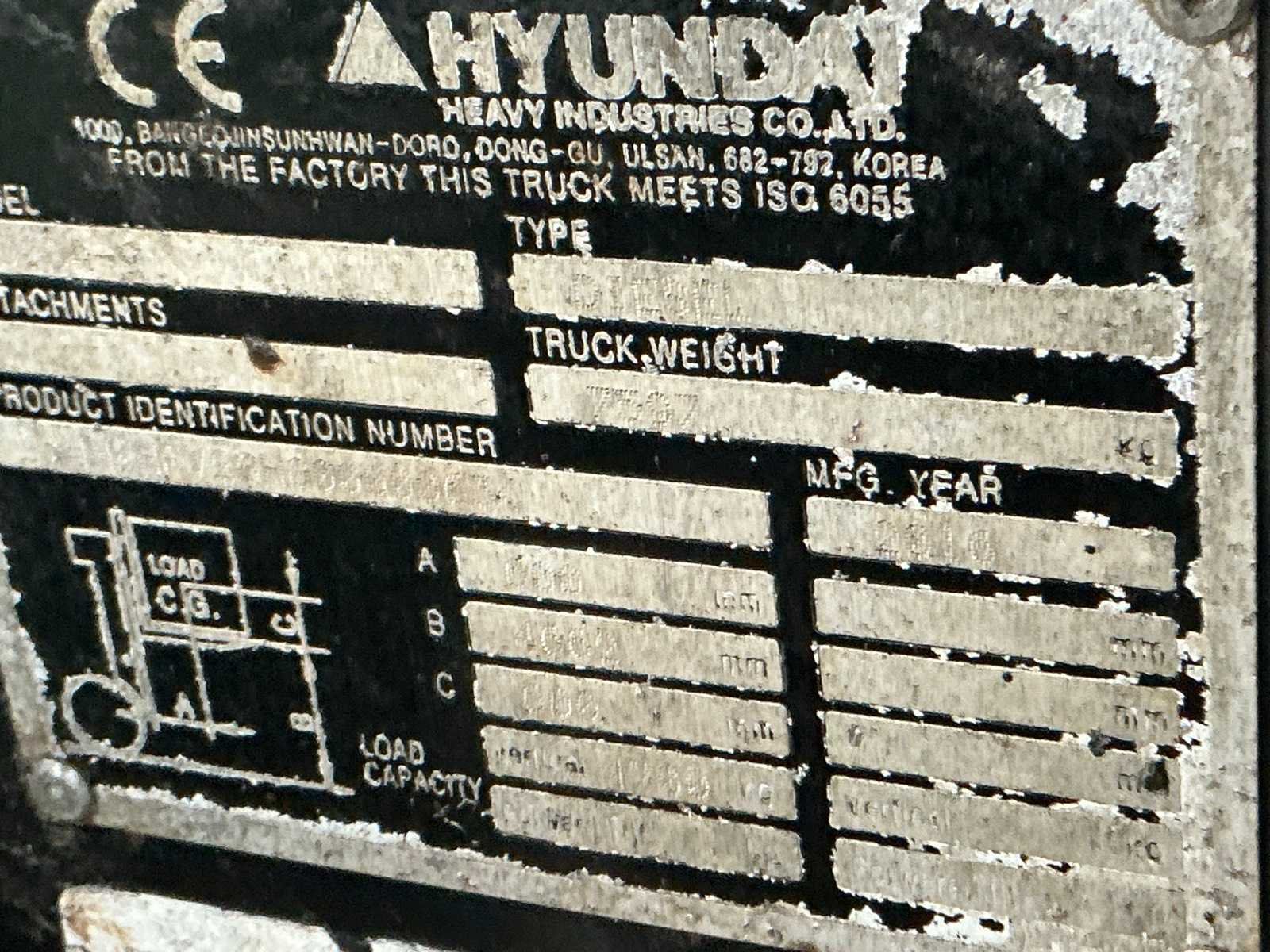 Kenteken TJD-32-J Nee Merk: Hyundai Type: 50DA-9 Bouwjaar: 2016 Serienummer: 1030674 Brandstof: diesel Kenteken: TJD-32-J Mast: Triple Soort band: Volrubber banden Aantal wielen: 4 Afgelezen urenstand: 2290 Free-lift: true Side-shift: true Hydraulisch verstelbare lepels: true Triple mast: true Eigen gewicht: 7597kg Hefvermogen: 5000kg Lepellengte: 1200mm Hefhoogte: 4600mm Vol rubber banden: true Totale afmeting L: 3250mm Totale afmeting Breedte: 1400mm Totale afmeting Hoogte: 2400mm Diesel: true