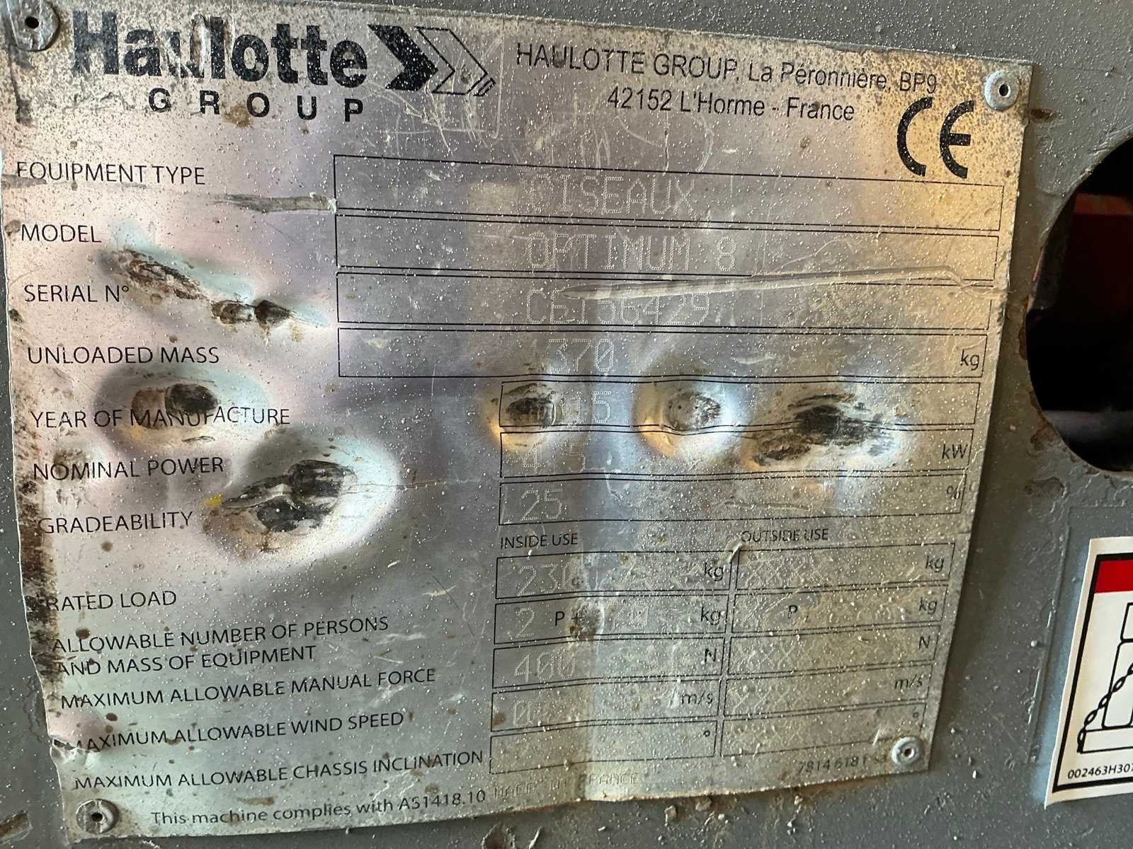 Incompleet/ geen accu/ afstandbediening Nee Merk: Haulotte Type: Optimum 8 Bouwjaar: 1015 Serienummer: CE156429 Elektrisch: true Schaarhoogwerker: true Werkhoogte: 7770mm Horizontale rijkwijdte: 860mm Plateau afm. l: 1720mm Plateau afm. b: 790mm Platform capaciteit: 230kg Accu lader: true Eigen gewicht: 1370kg Totale afmeting L: 1840mm Totale afmeting Breedte: 760mm Totale afmeting Hoogte: 1900mm