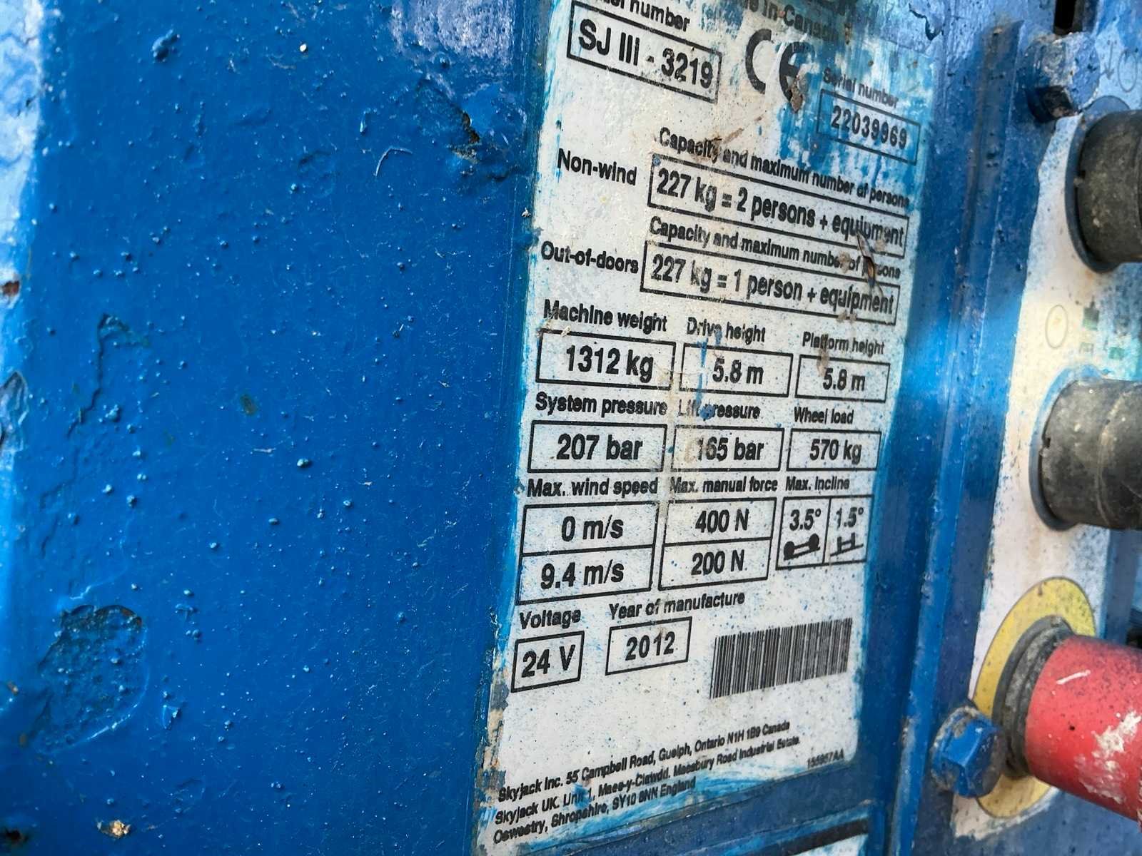 Nee Merk: Skyjack Type: SJIII3219 Bouwjaar: 2012 Serienummer: 22039869 Elektrisch: true Schaarhoogwerker: true Werkhoogte: 7800mm Horizontale rijkwijdte: 910mm Plateau afm. l: 1630mm Plateau afm. b: 660mm Platform capaciteit: 227kg Accu lader: true Afgelezen urenstand: 353 Eigen gewicht: 1312kg Totale afmeting L: 1780mm Totale afmeting Breedte: 810mm Totale afmeting Hoogte: 1750mm