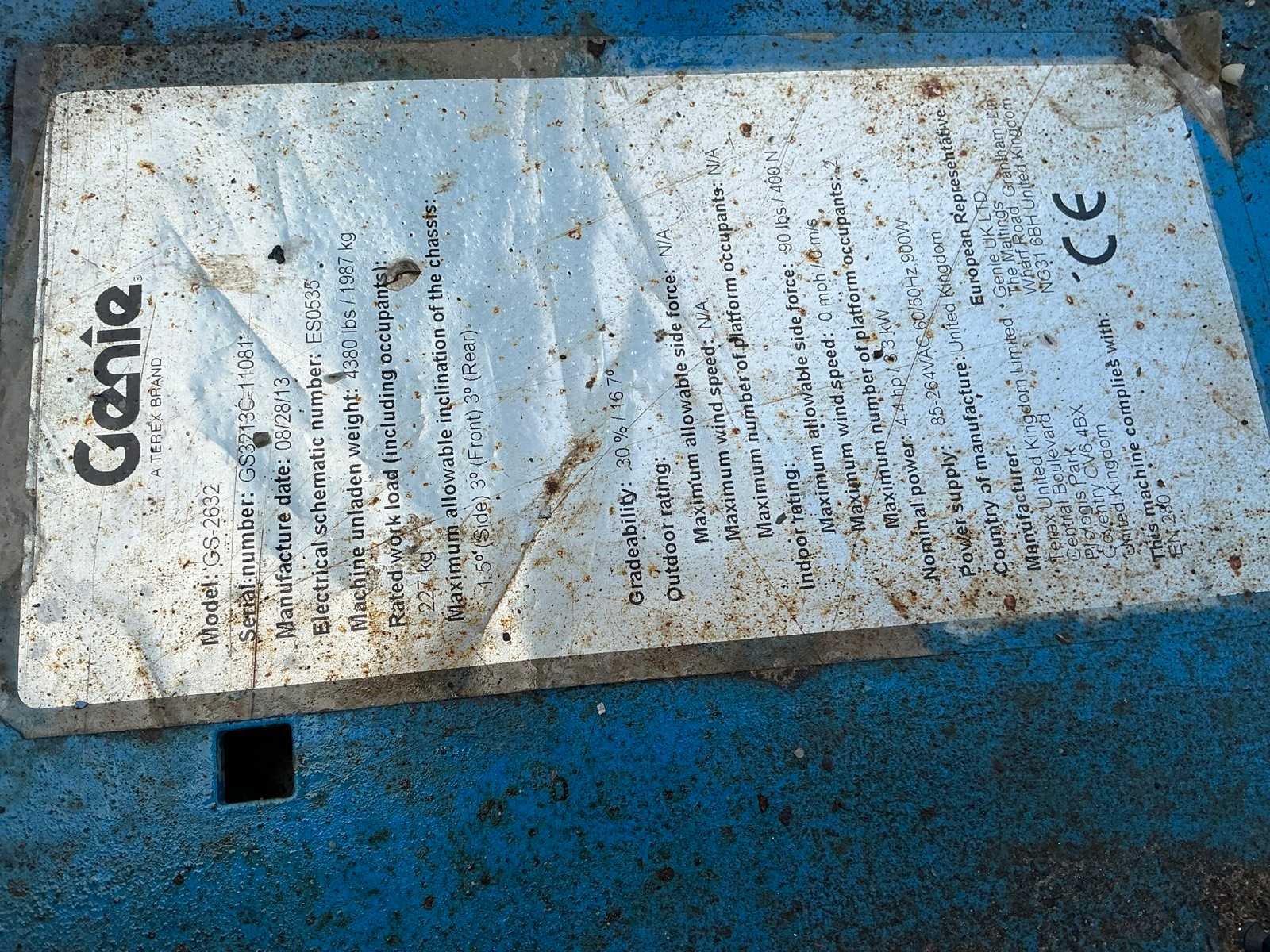 Nee Merk: Genie Type: GS-2632 Bouwjaar: 2013 Serienummer: 11081 Elektrisch: true Schaarhoogwerker: true Werkhoogte: 9960mm Horizontale rijkwijdte: 910mm Plateau afm. l: 2270mm Plateau afm. b: 820mm Platform capaciteit: 227kg Accu lader: true Afgelezen urenstand: 390 Eigen gewicht: 1987kg Totale afmeting L: 2440mm Totale afmeting Breedte: 840mm Totale afmeting Hoogte: 1940mm