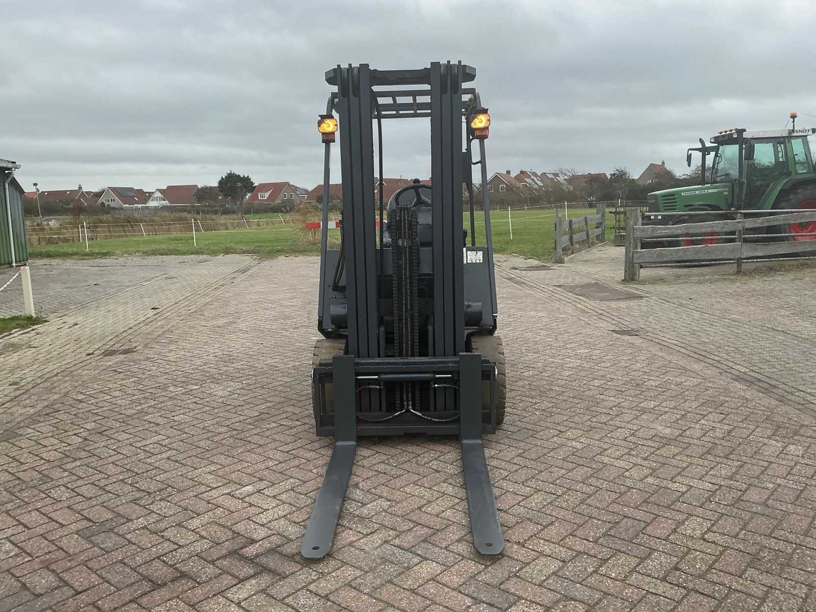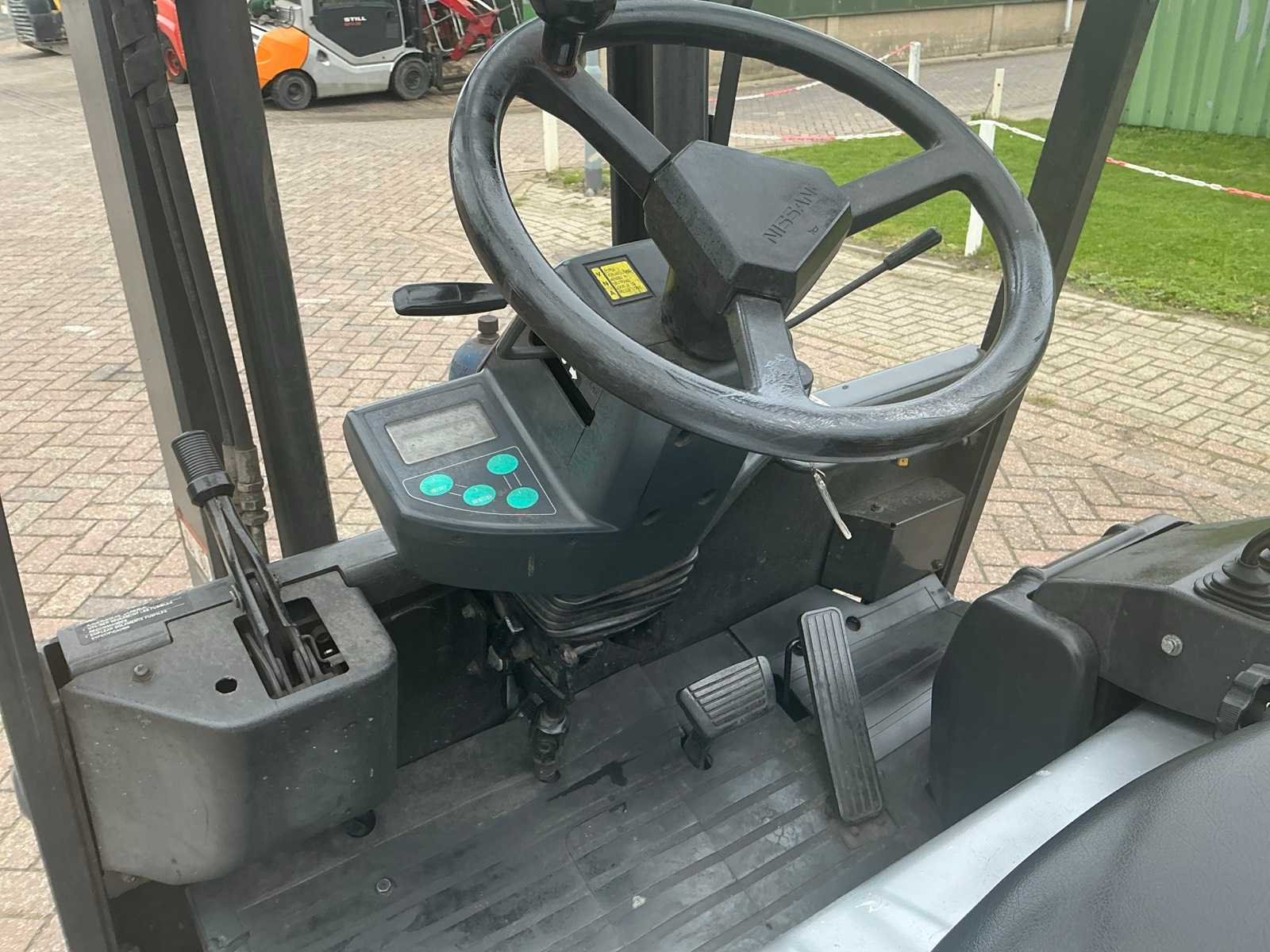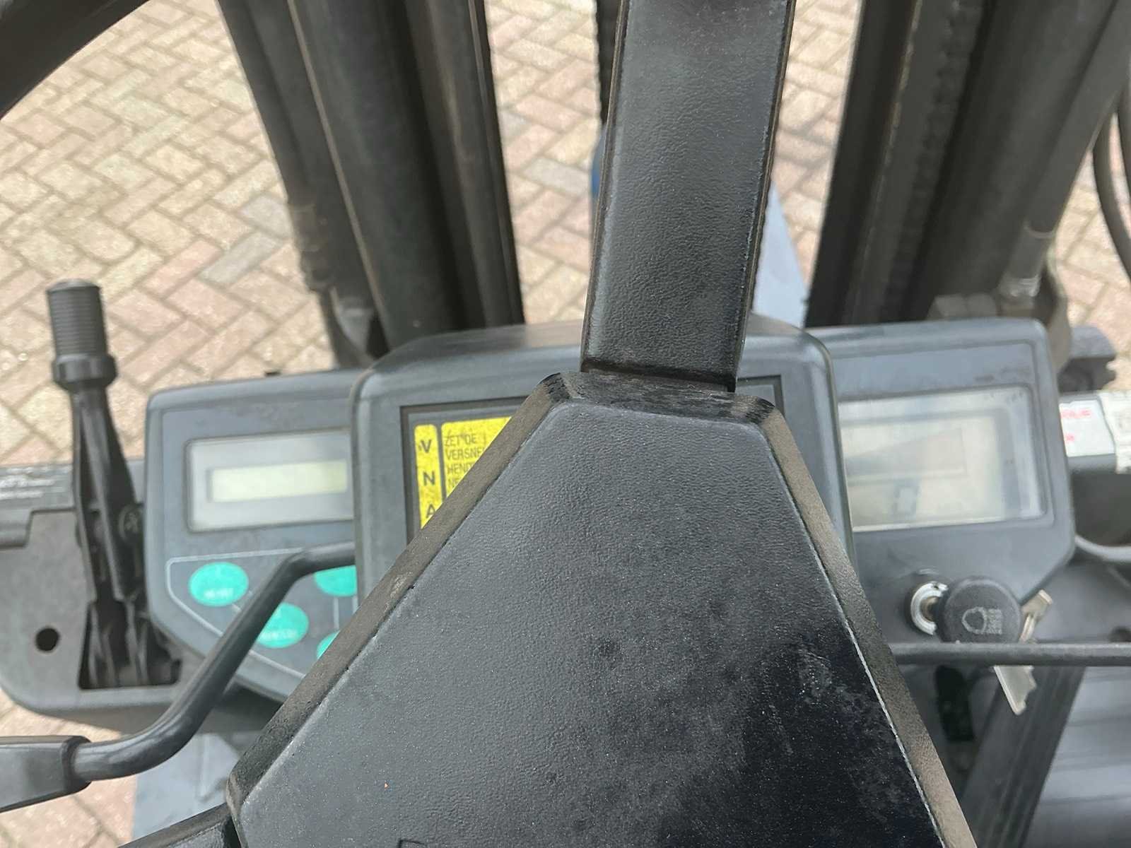 Nee Merk: Nissan Type: Q02L25CU Serienummer: E703413 Brandstof: Elektrisch Mast: Triple Soort band: Volrubber banden Aantal wielen: 4 Free-lift: true Side-shift: true Triple mast: true Eigen gewicht: 5000kg Hefvermogen: 2500kg Lepellengte: 1230mm Hefhoogte: 4750mm Vol rubber banden: true Totale afmeting L: 2500mm Totale afmeting Breedte: 1200mm Totale afmeting Hoogte: 2150mm