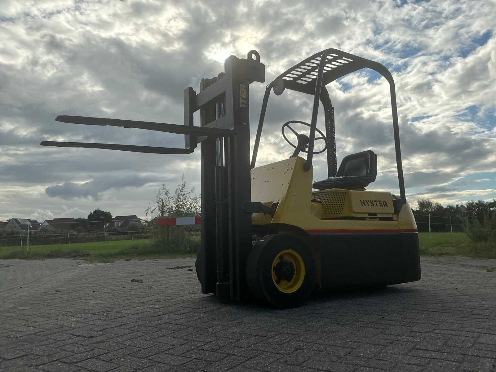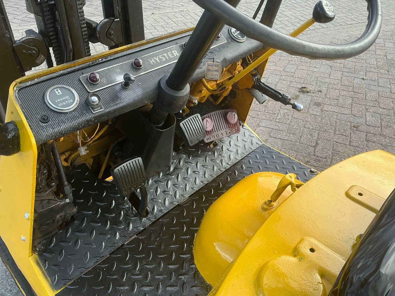 Nee Merk: Hyster Type: H30E Bouwjaar: 1985 Serienummer: B-E15701Y Brandstof: Diesel Mast: Duplex Soort band: Volrubber banden Aantal wielen: 3 Free-lift: true Duplex mast: true Lepellengte: 1100mm Hefhoogte: 2650mm Vol rubber banden: true Totale afmeting L: 2100mm Totale afmeting Breedte: 950mm Totale afmeting Hoogte: 2000mm