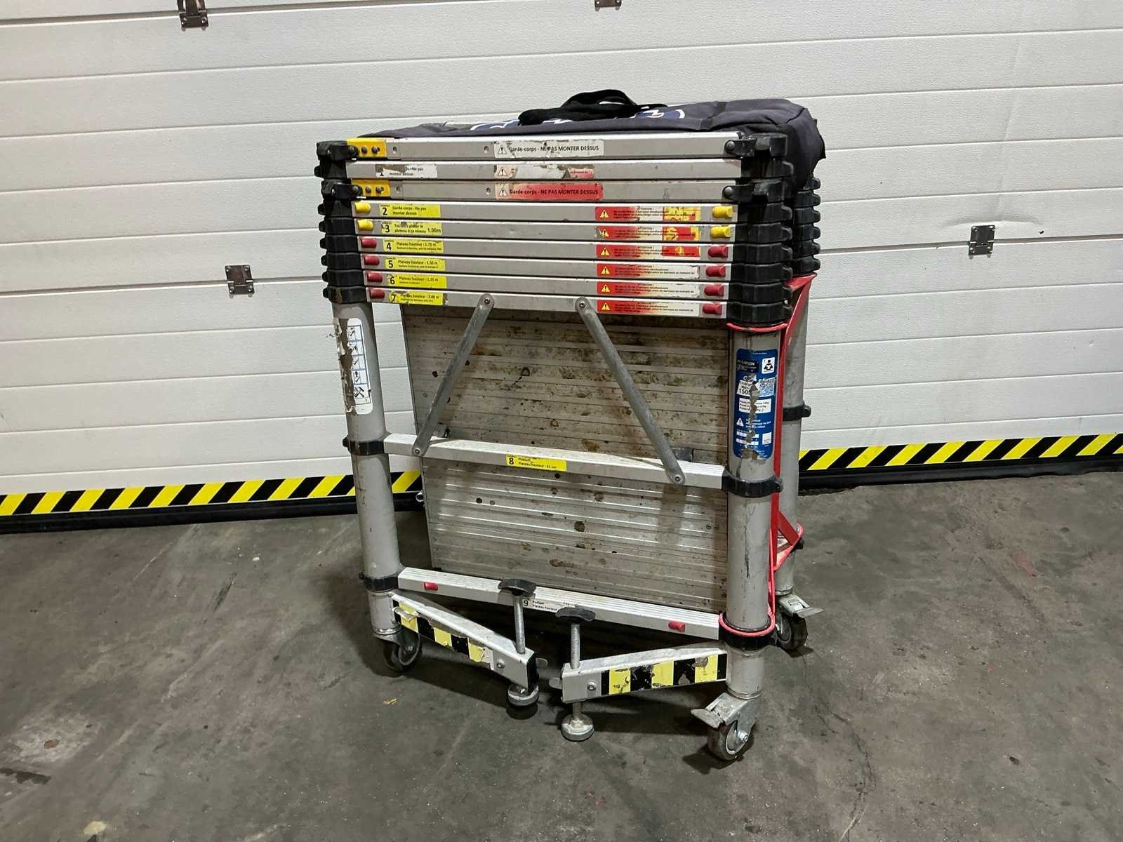 Nee Merk: Teletower Type: Telescopic Afmeting l: 1400mm Afmeting b: 750mm Afmeting h: 400mm Aantal opbouwdelen: 2 Aantal platforms: 1 Kantplankenset: true Aantal wielen: 4 Vouwsteiger: true