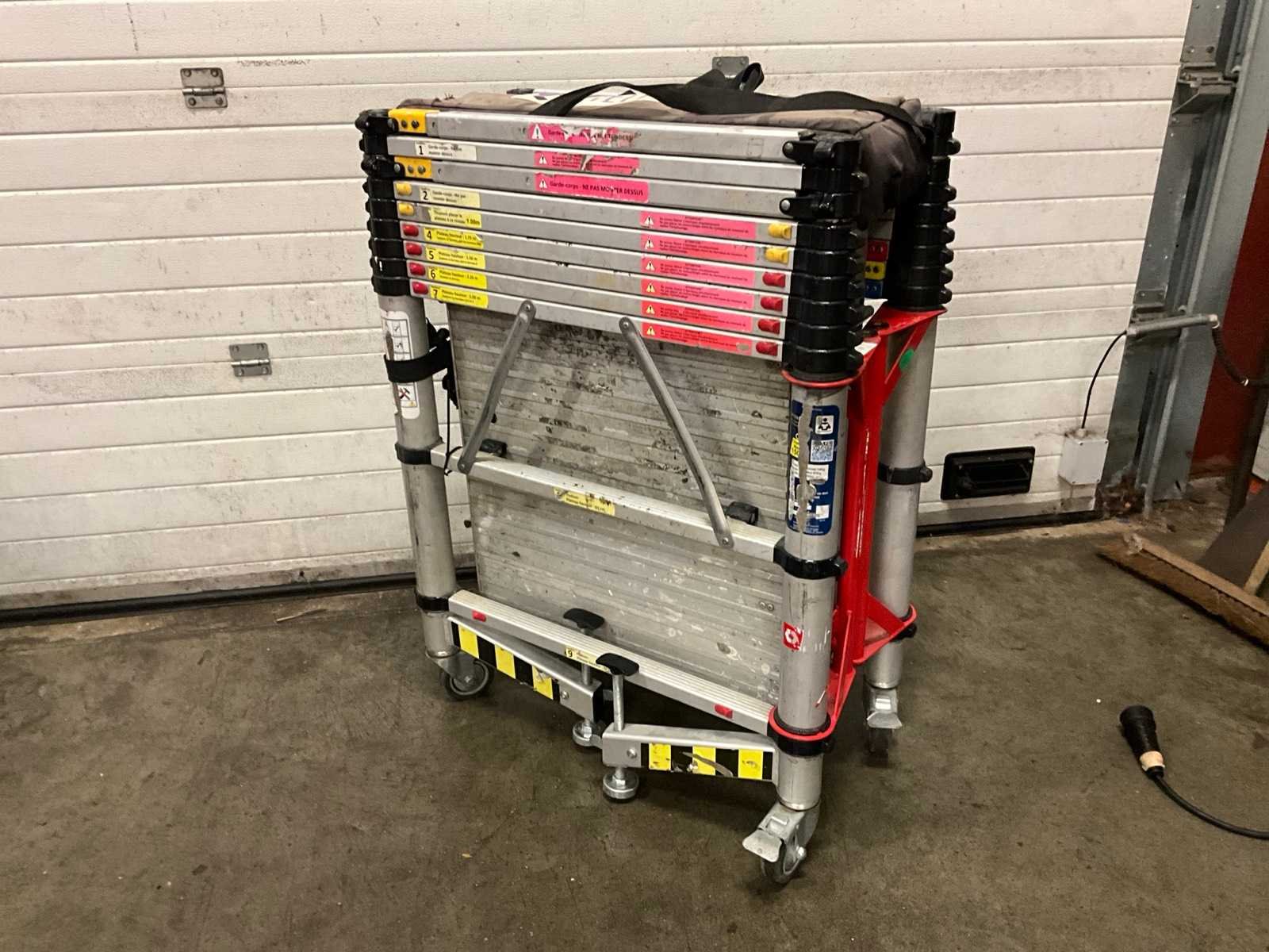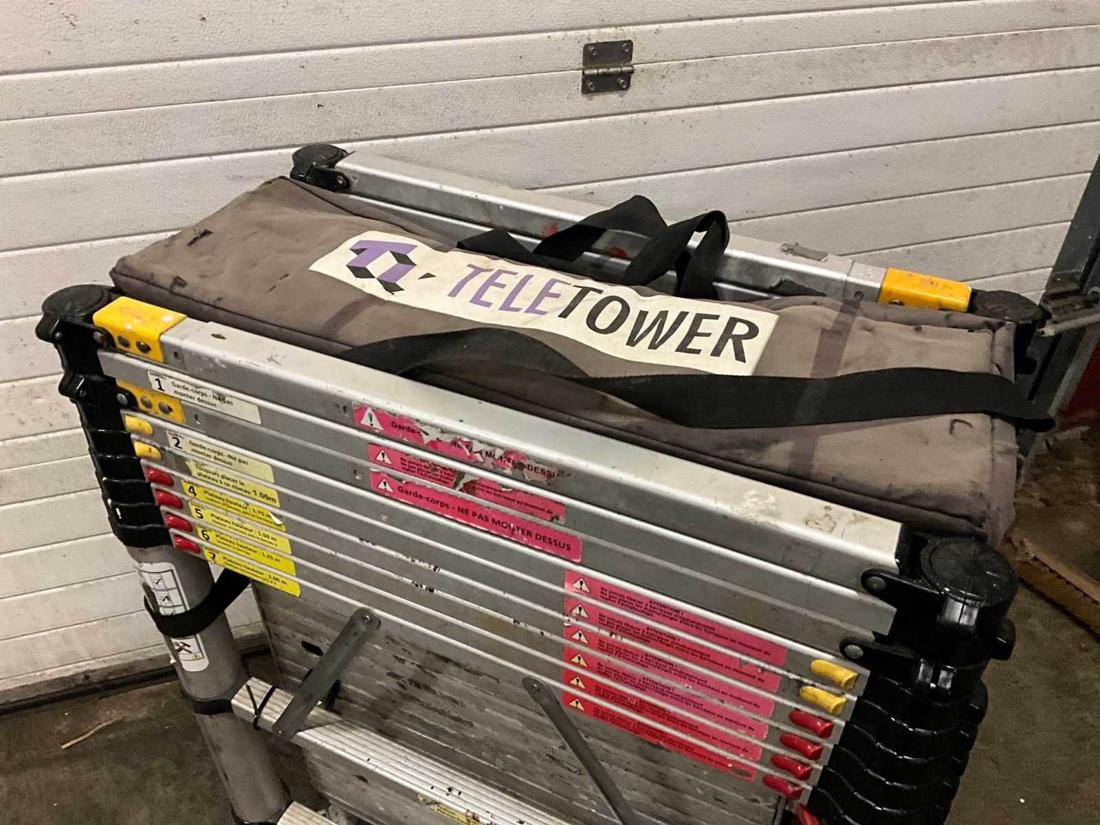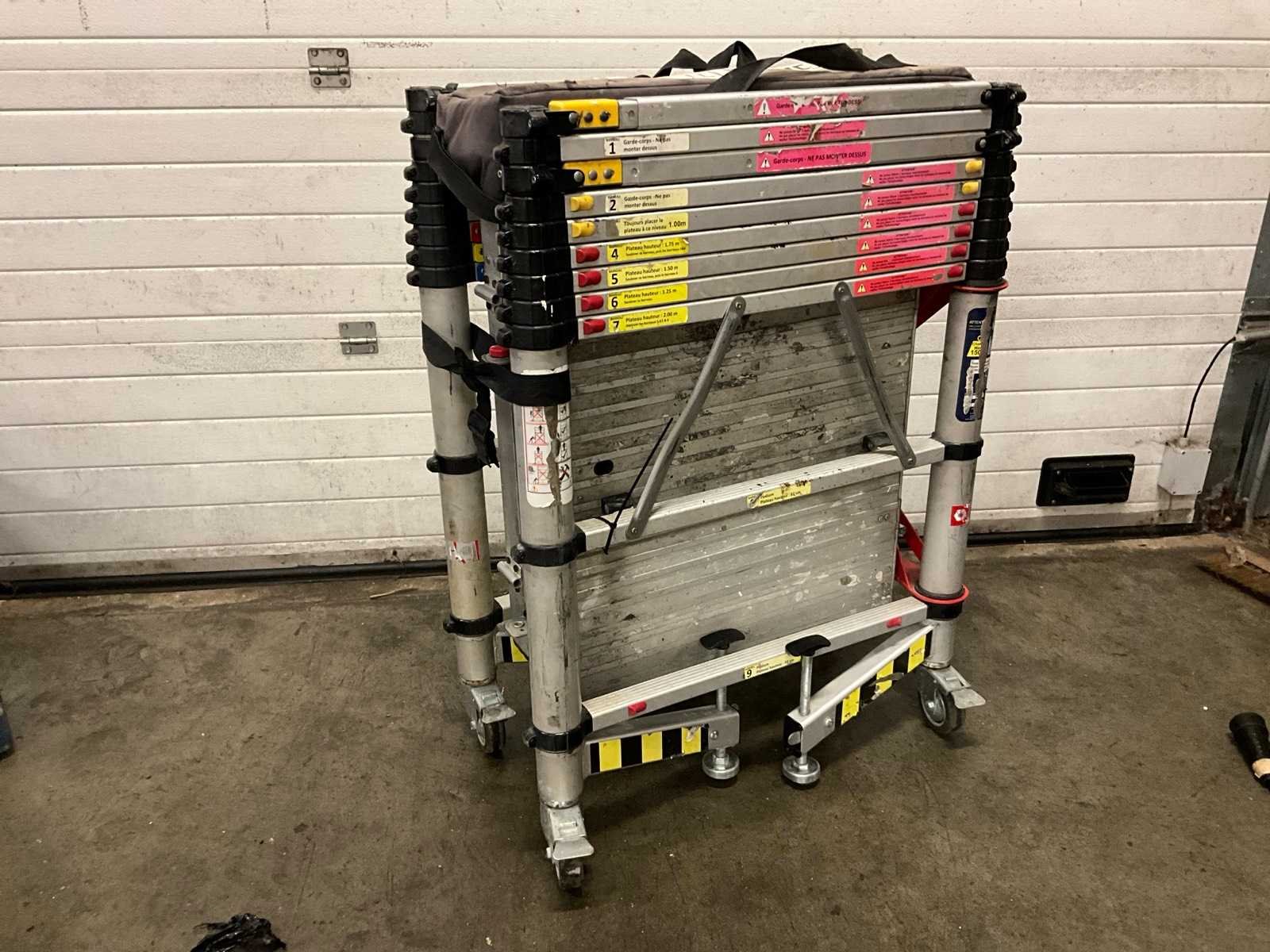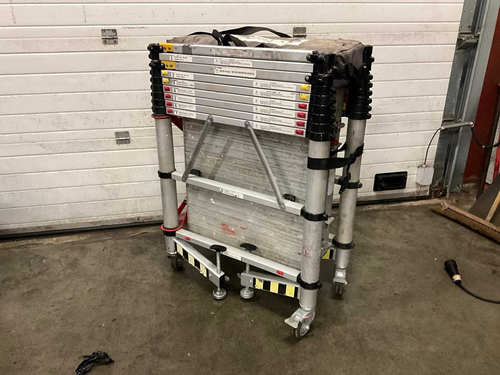Nee Merk: Teletower Type: Telescopic Afmeting l: 1450mm Afmeting b: 750mm Afmeting h: 4000mm Aantal opbouwdelen: 2 Aantal platforms: 1 Aantal platforms met luik: 1 Kantplankenset: true Aantal wielen: 4 Vouwsteiger: true