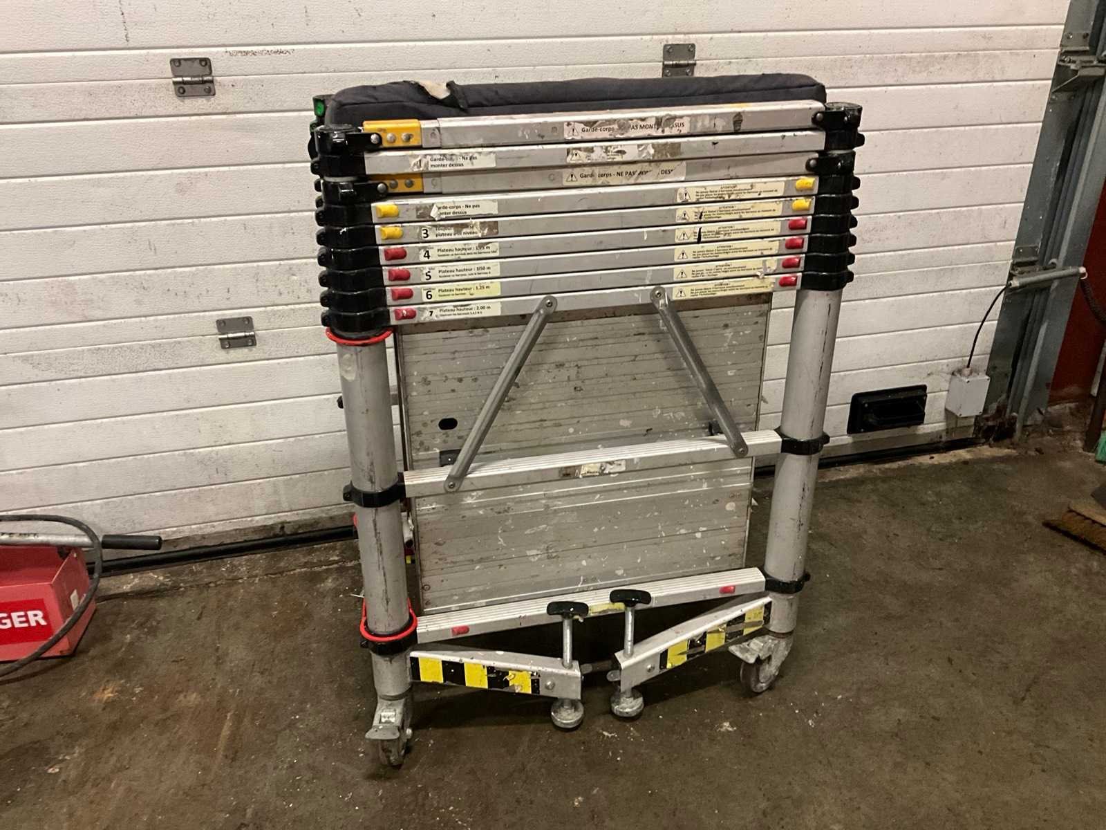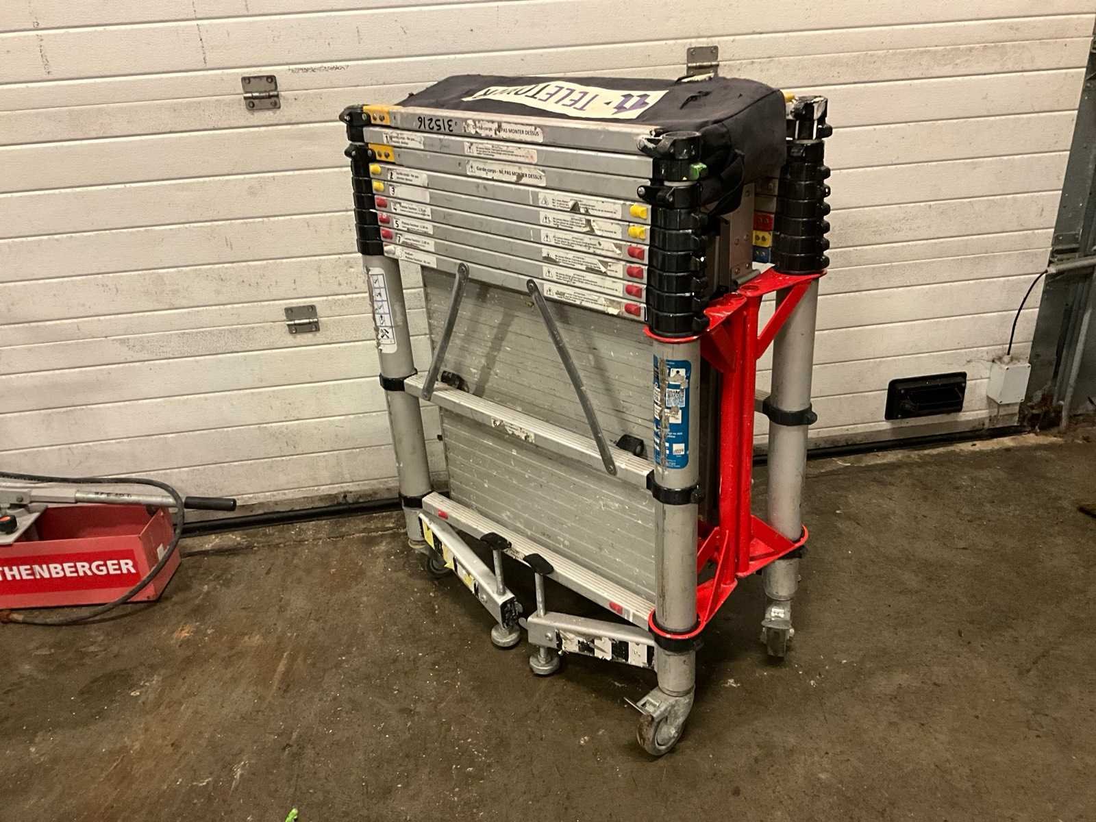 Nee Merk: Teletower Type: Telescopic Afmeting l: 1450mm Afmeting b: 750mm Afmeting h: 4000mm Aantal opbouwdelen: 2 Aantal platforms: 1 Aantal platforms met luik: 1 Kantplankenset: true Aantal wielen: 4 Vouwsteiger: true
