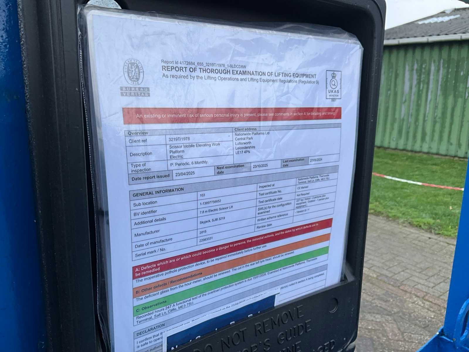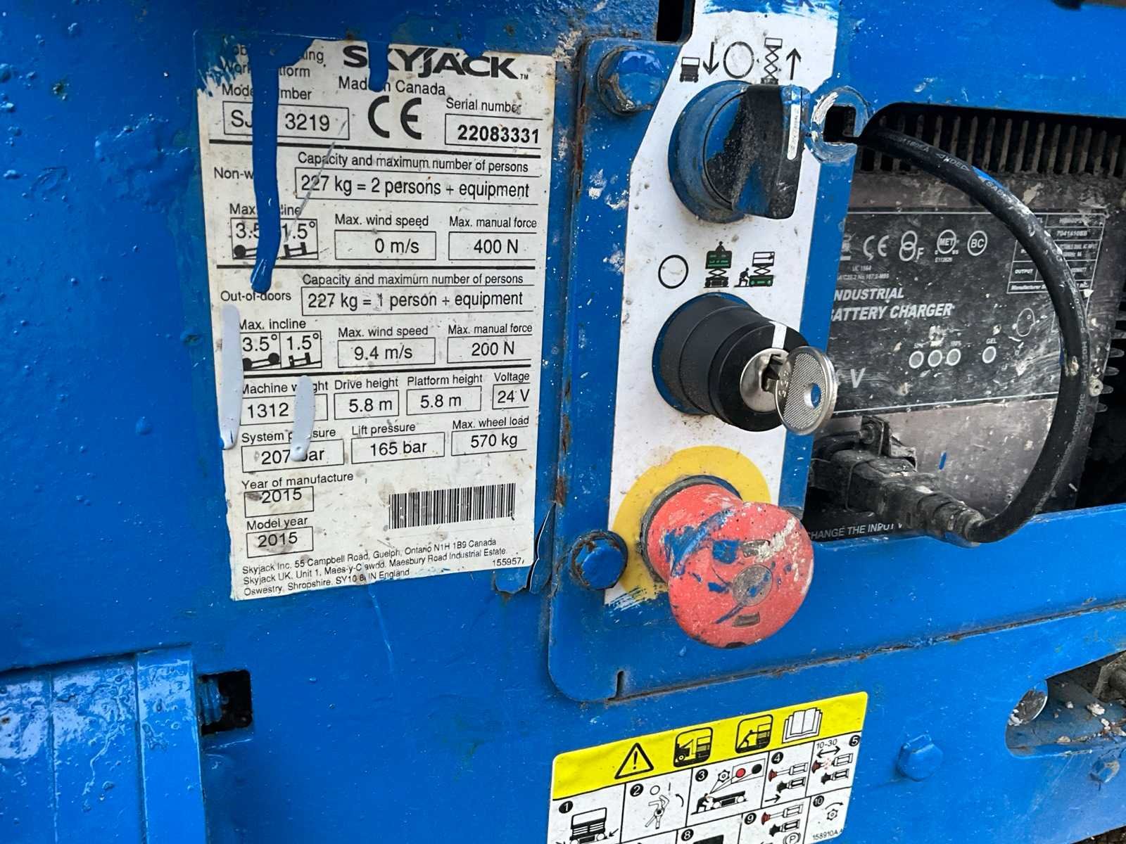 Accu leeg; werking onbekend Nee Merk: Skyjack Type: SJIIII3219 Bouwjaar: 2015 Serienummer: 22083331 Elektrisch: true Schaarhoogwerker: true Werkhoogte: 7800mm Horizontale rijkwijdte: 910mm Plateau afm. l: 1630mm Plateau afm. b: 660mm Platform capaciteit: 227kg Accu lader: true Afgelezen urenstand: 0 Eigen gewicht: 1312kg Totale afmeting L: 1780mm Totale afmeting Breedte: 810mm Totale afmeting Hoogte: 1750mm