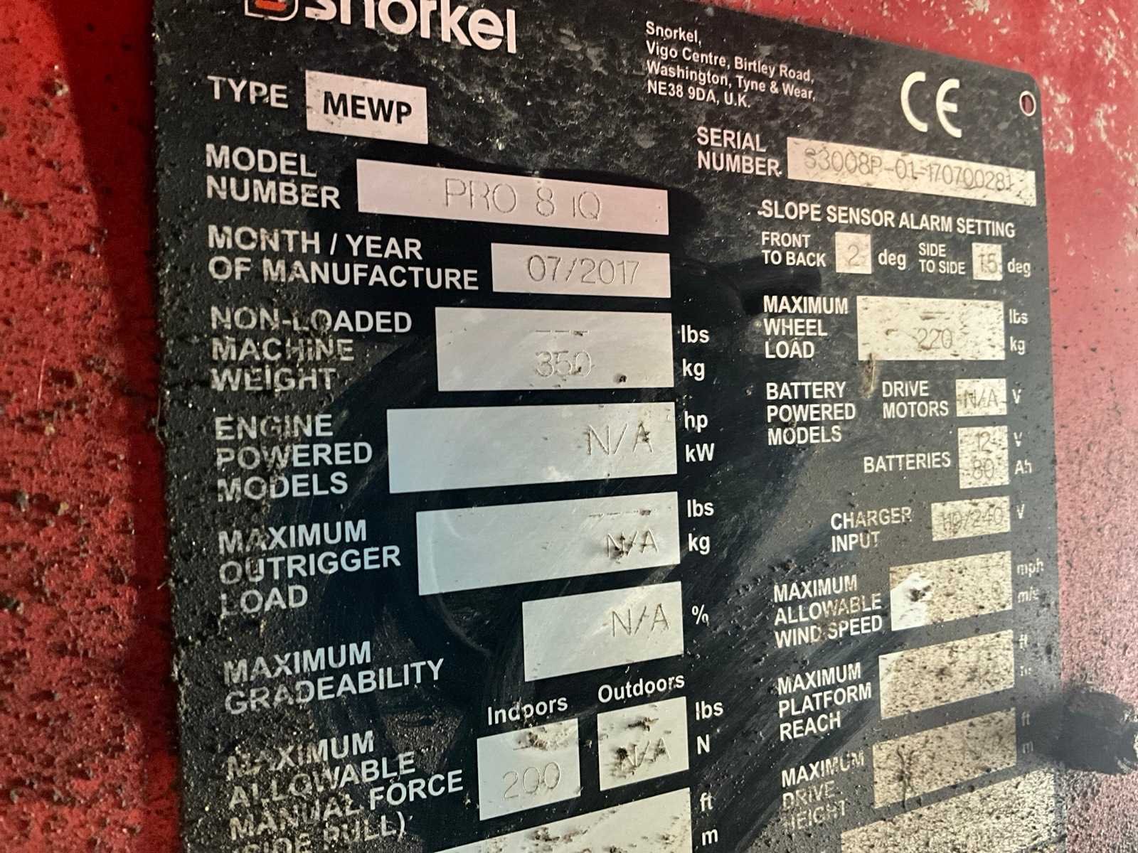2017 snorkel pro 8 iq hoogwerker