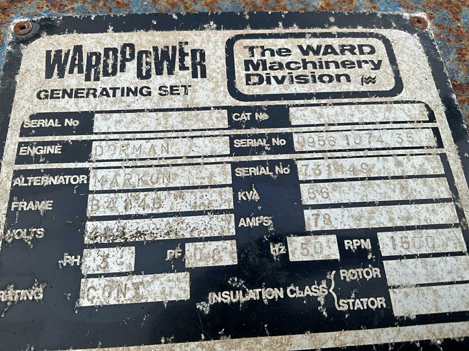Niet getest Nee Merk: Wardpower Type: B414B Capaciteit.: 56kVA Motor merk: Dorman Generator merk: Markon Generator capaciteit: 78A Totale afmeting L: 2150mm Totale afmeting Breedte: 750mm Totale afmeting Hoogte: 1300mm