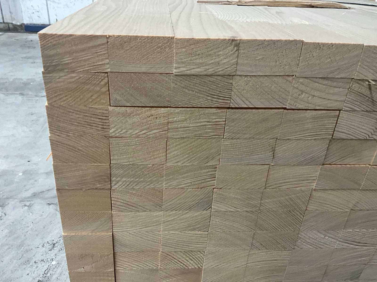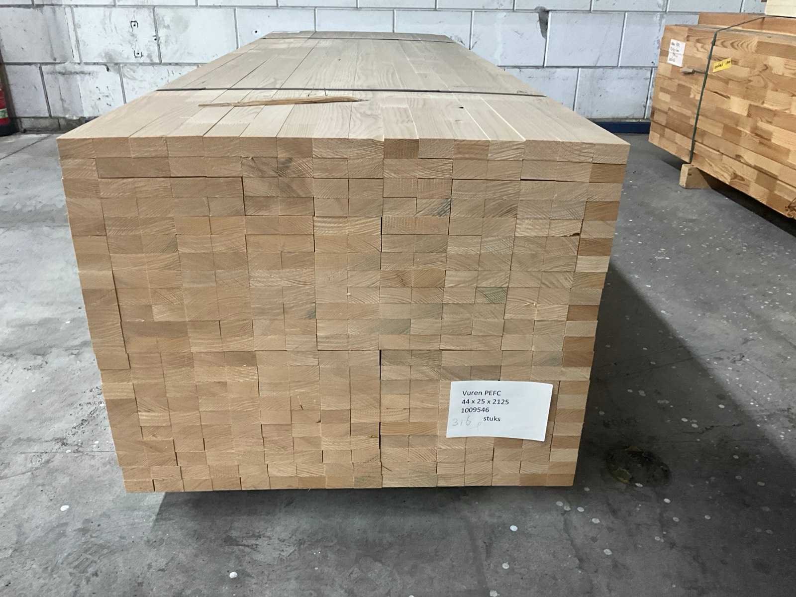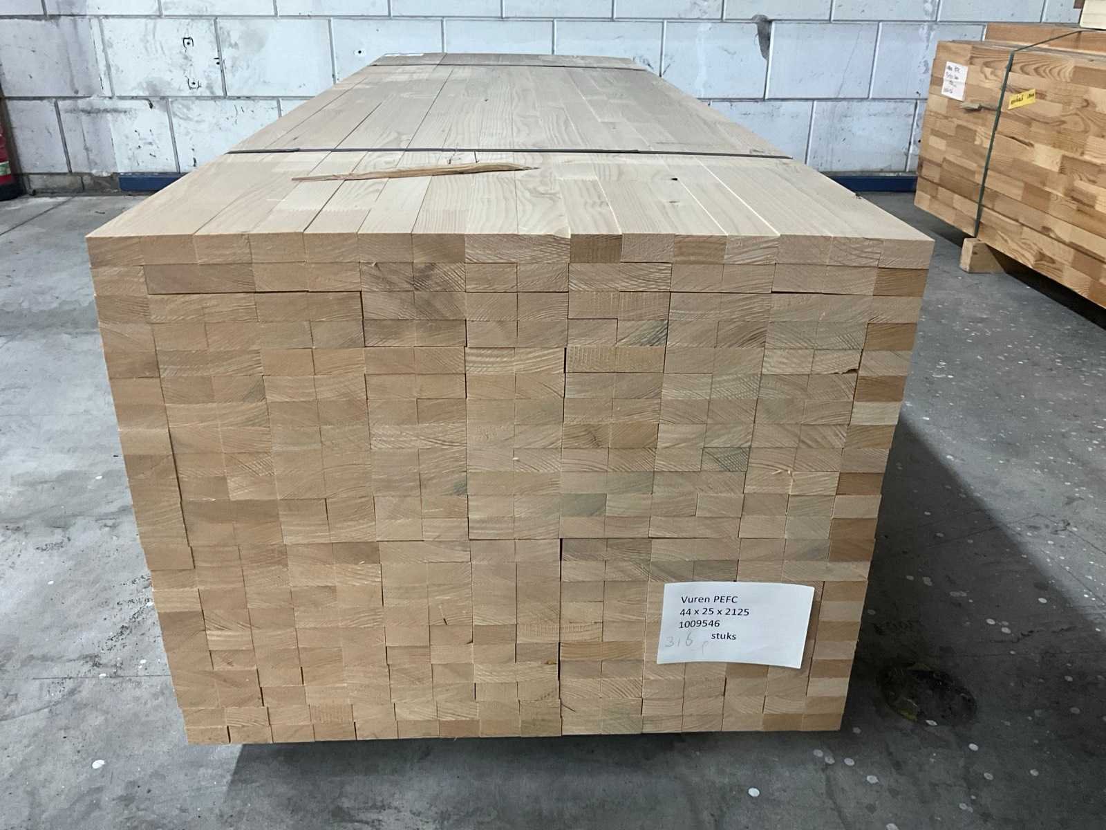 300 stuk latten 2125x44x25mm, 150 stuk balk 3000x55x50mm, op 2 pakketten. Nee