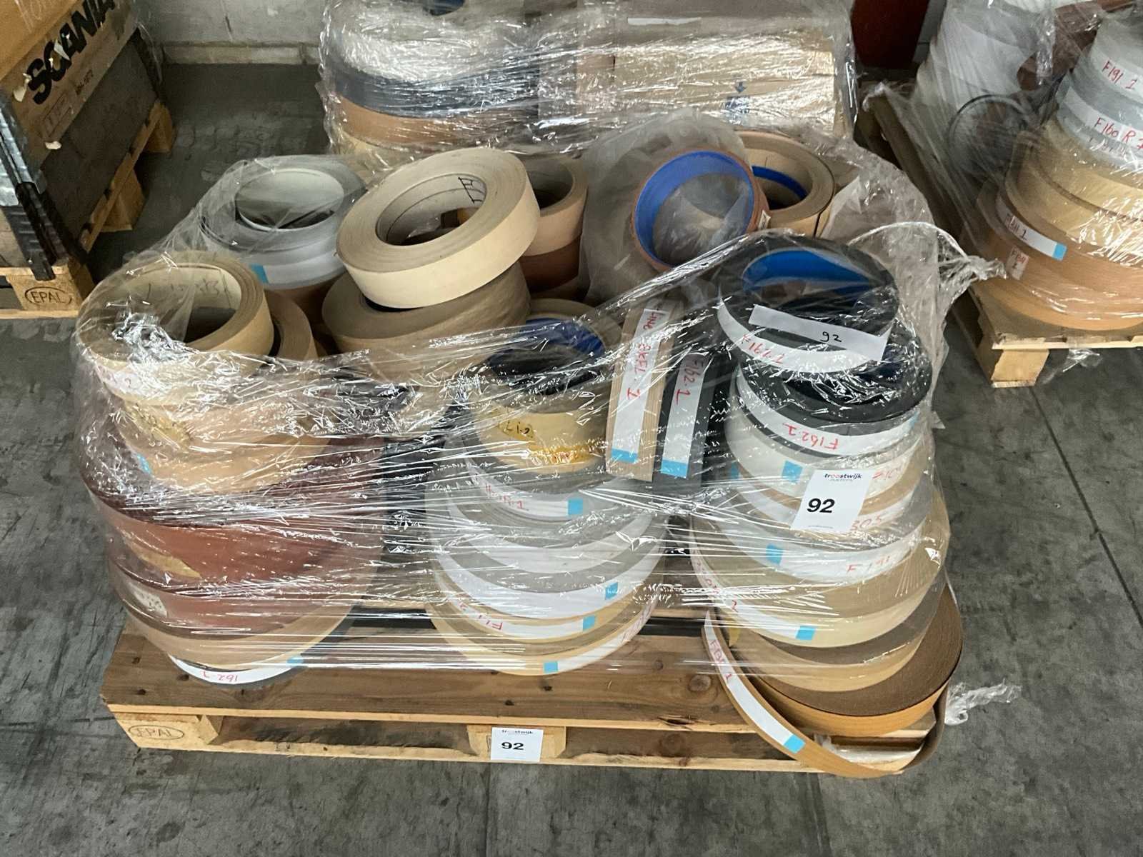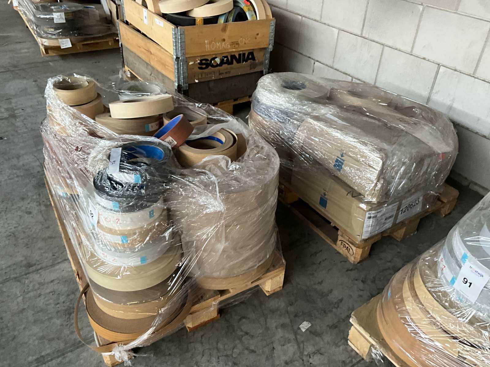 Partij van diverse rollen met verschillende afmetingen, op 2 pallets Nee