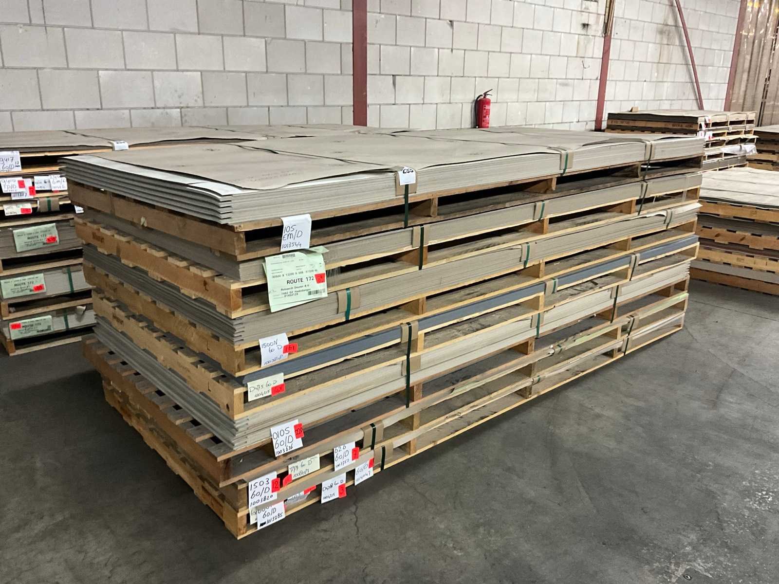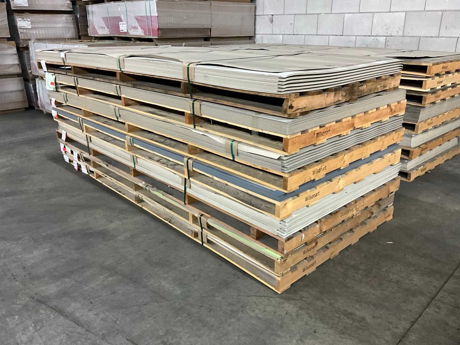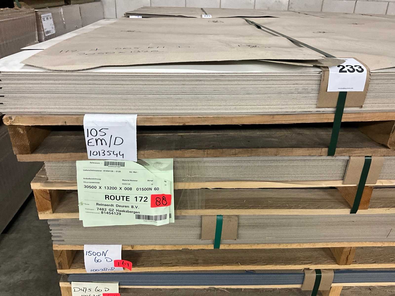 Waarvan de volgende formaten: 3050x1320x0.8mm. Bestaande uit 7 pallets en diverse kleuren. Nee Merk: Resopal