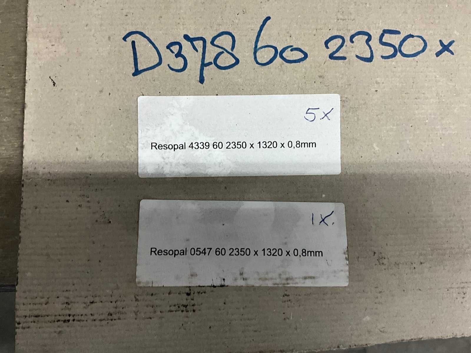 Waarvan de volgende formaten: 2350x1320x0.8mm Bestaande uit 4 pallets en diverse kleuren. Nee Merk: Resopal