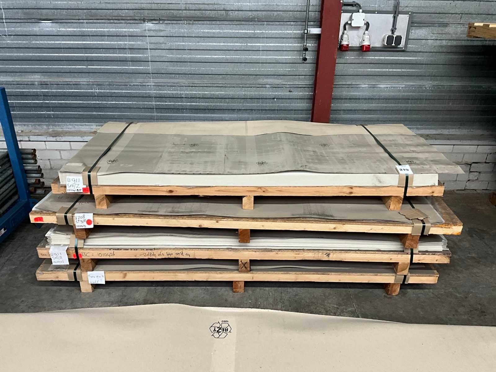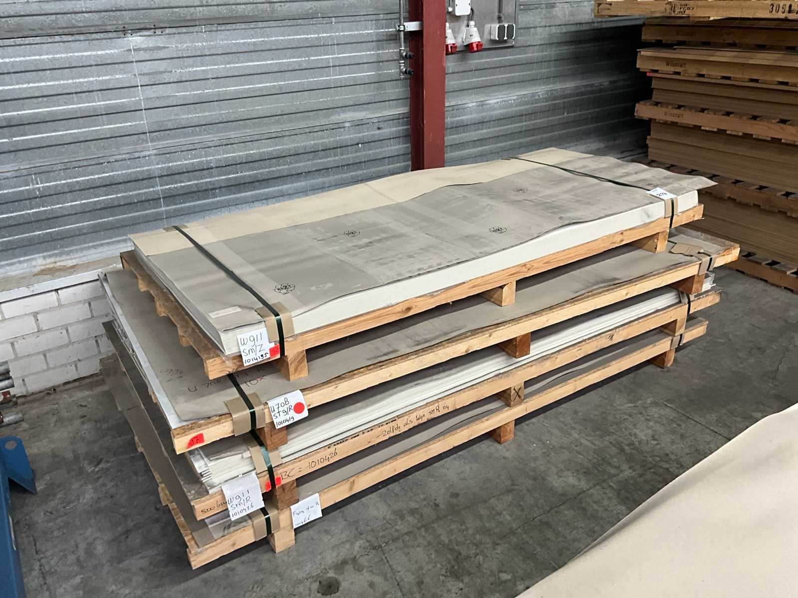 Waarvan de volgende formaten: 2150x1020x0.8mm, bestaande uit 4 pallets in diverse kleuren. Nee Merk: Egger