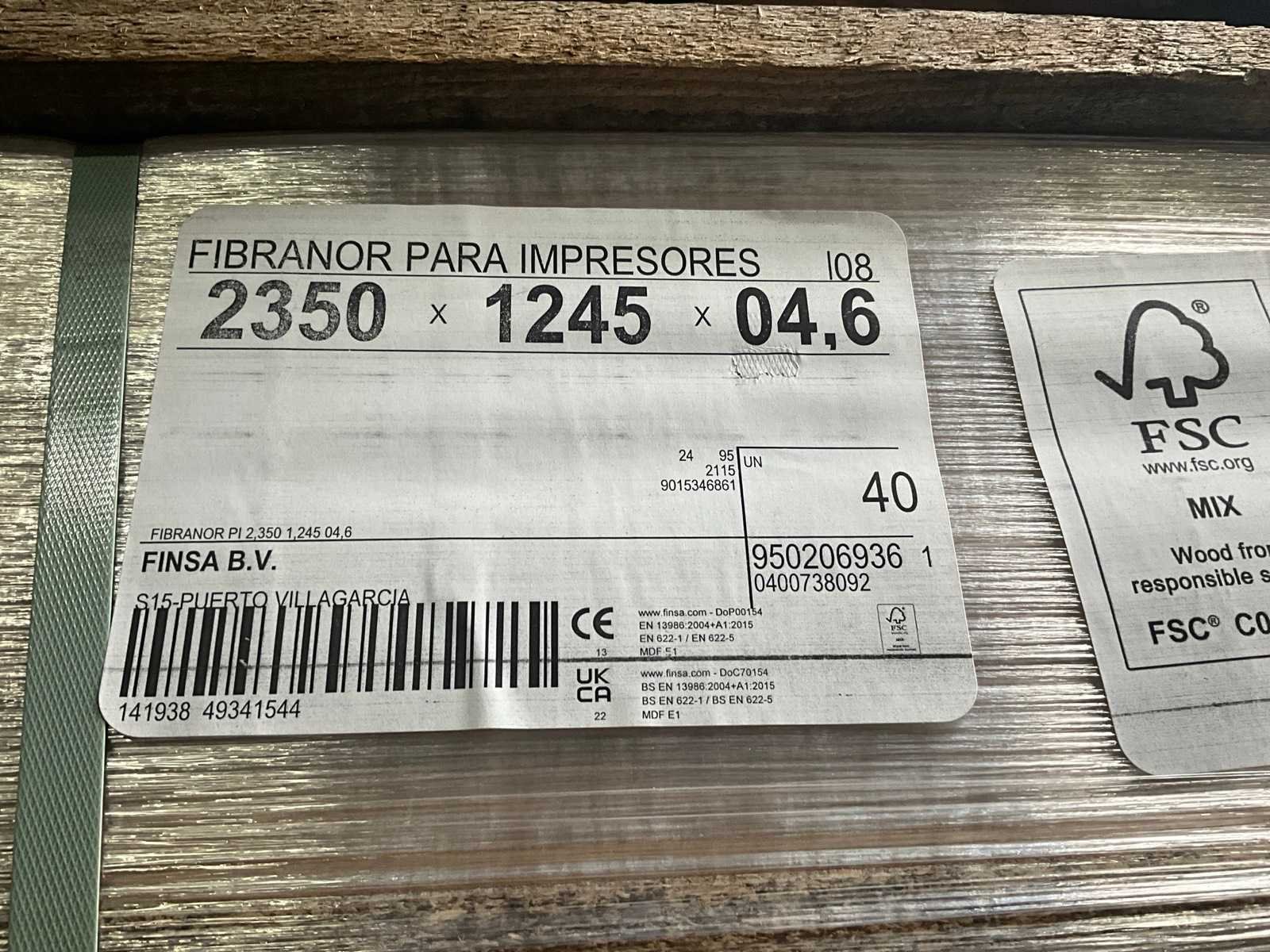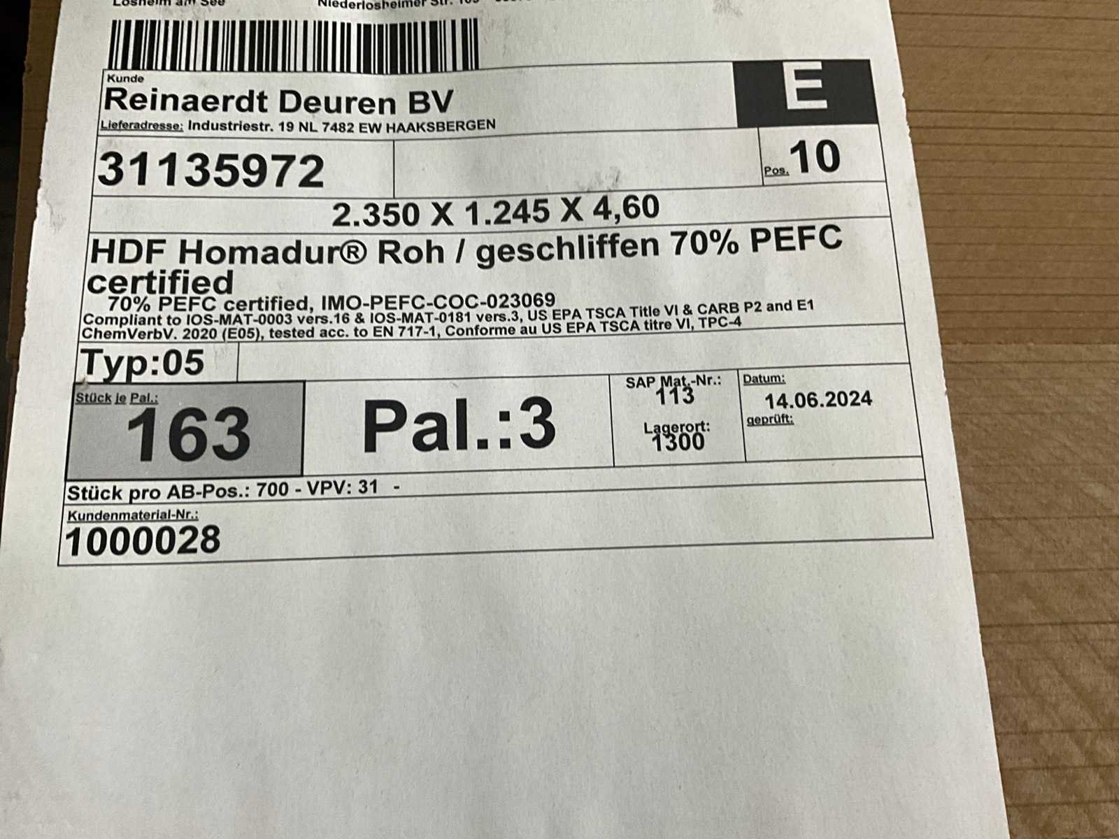 Circa 600 stuk, dikte 4,6mm, op 5 pakketten. Nee Merk: Homanit Lengte: 2350mm Breedte: 1245mm