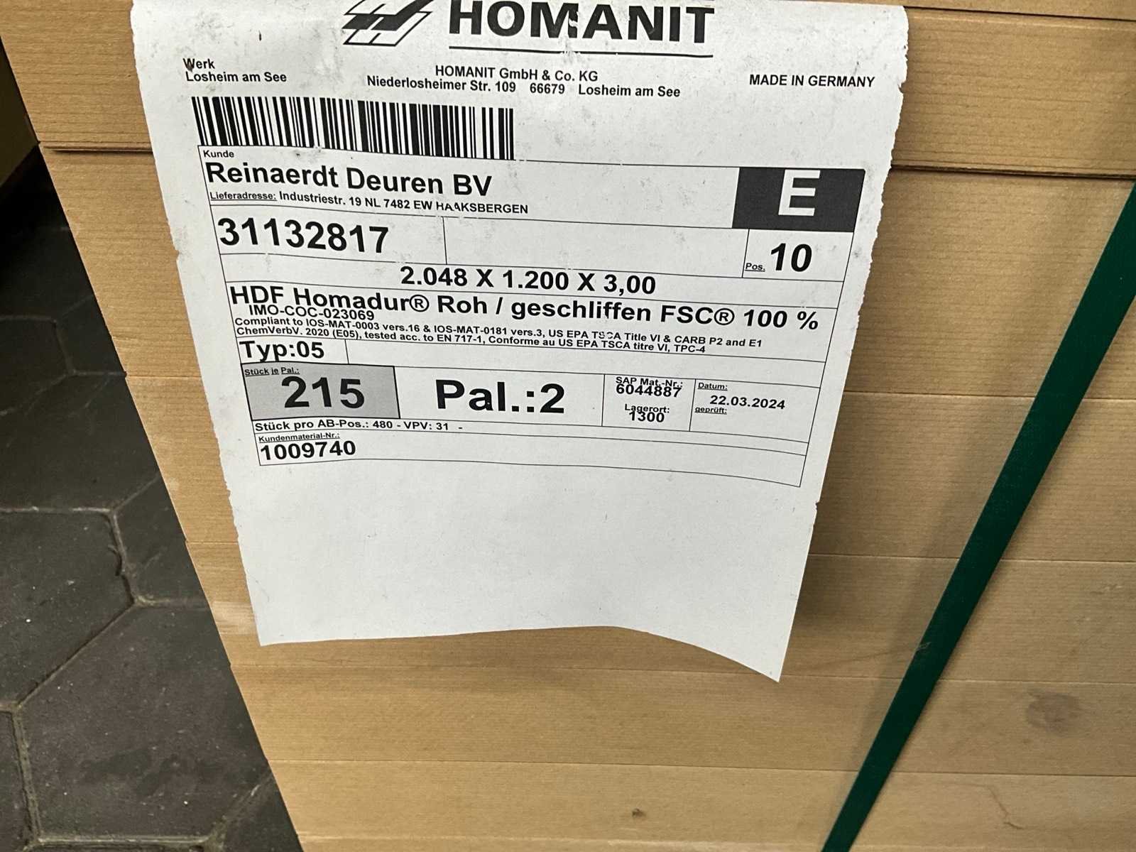 Circa 430 stuk, dikte 3mm, inclusief circa 40 stuk 2125x995x3mm en circa 8 stuk 2400x1100x3mm. Nee Merk: Homanit Lengte: 2048mm Breedte: 1200mm