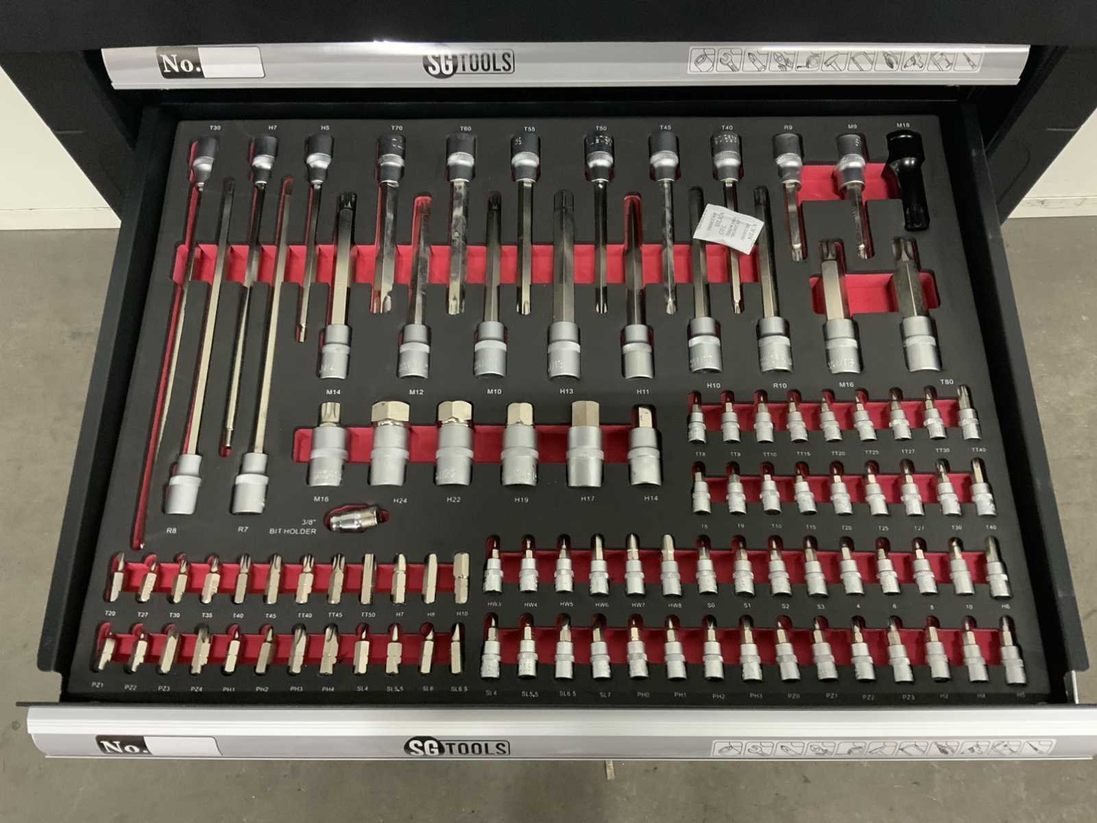7 lades met inhoud, 257 pcs ongebruikt Nee Merk: Sg tools Type: 257 stuks Bouwjaar: 2025