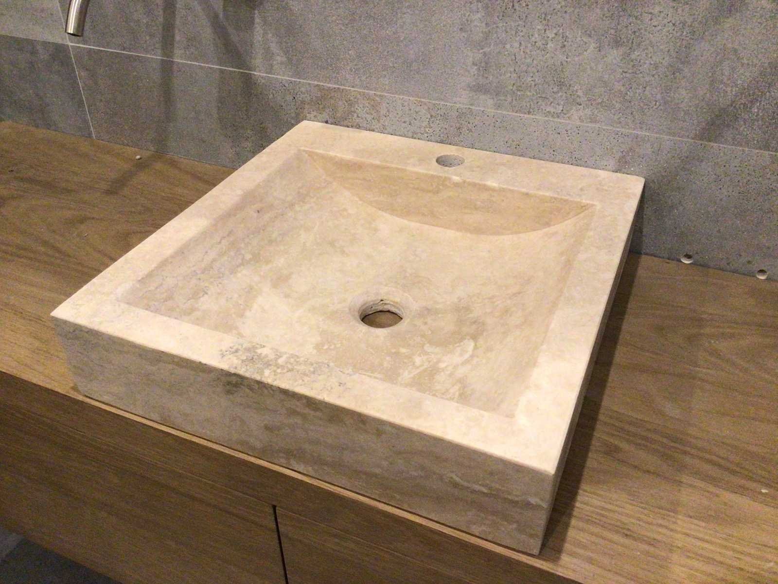 Natuursteen travertin beige wastafel 45x46x10 cm