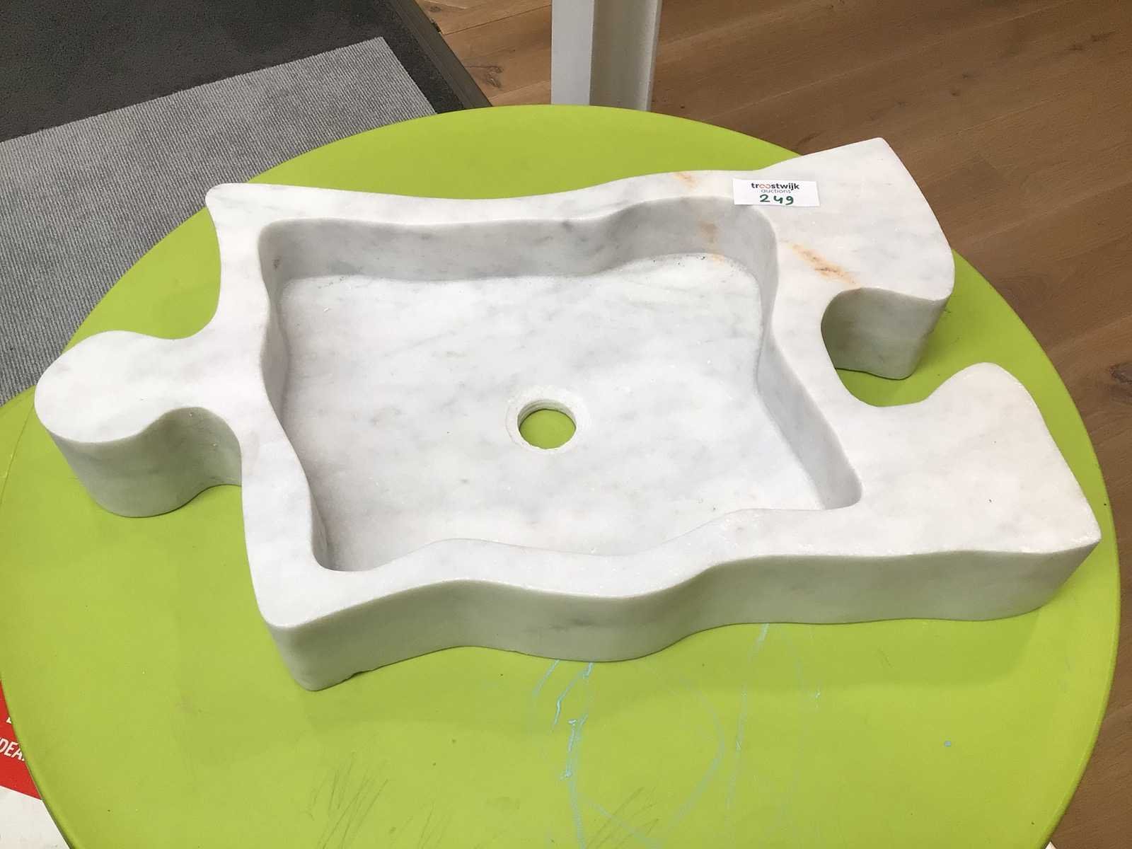 Nee Merk: Natuursteen Model: Puzzle Product type: Wastafel Kleur: White Gewicht: 45kg Lengte: 38cm Breedte: 60cm Hoogte: 10cm Materiaal: Marmer