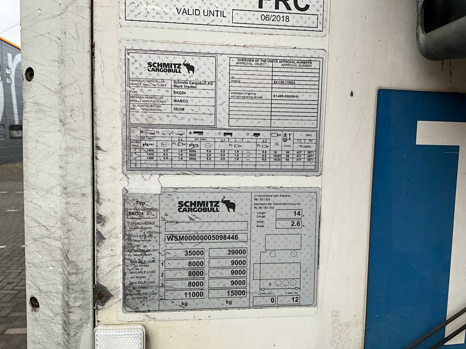 Carrier Vector 1550 koelunit, onderbouw opslagkosten, 3x 9T Schmitz Assen, insteekmaat 2650x2450mm Nee Merk: Schmitz Type: SKO24 Type aanhangwagencarrosserie: Gesloten aanhangwagen Bouwjaar: 2012 Chassisnummer VIN: WSM00000005098446 Kenteken: OR-15-HK Datum eerste toelating (NL): 2019-01-09 Datum eerste toelating: 2012-07-04 APK vervaldatum: 2026-04-25 Aantal assen: 3 Laadvermogen: 30957kg Koeltrailer: true Zelf rijdend exporteren: Mogelijk