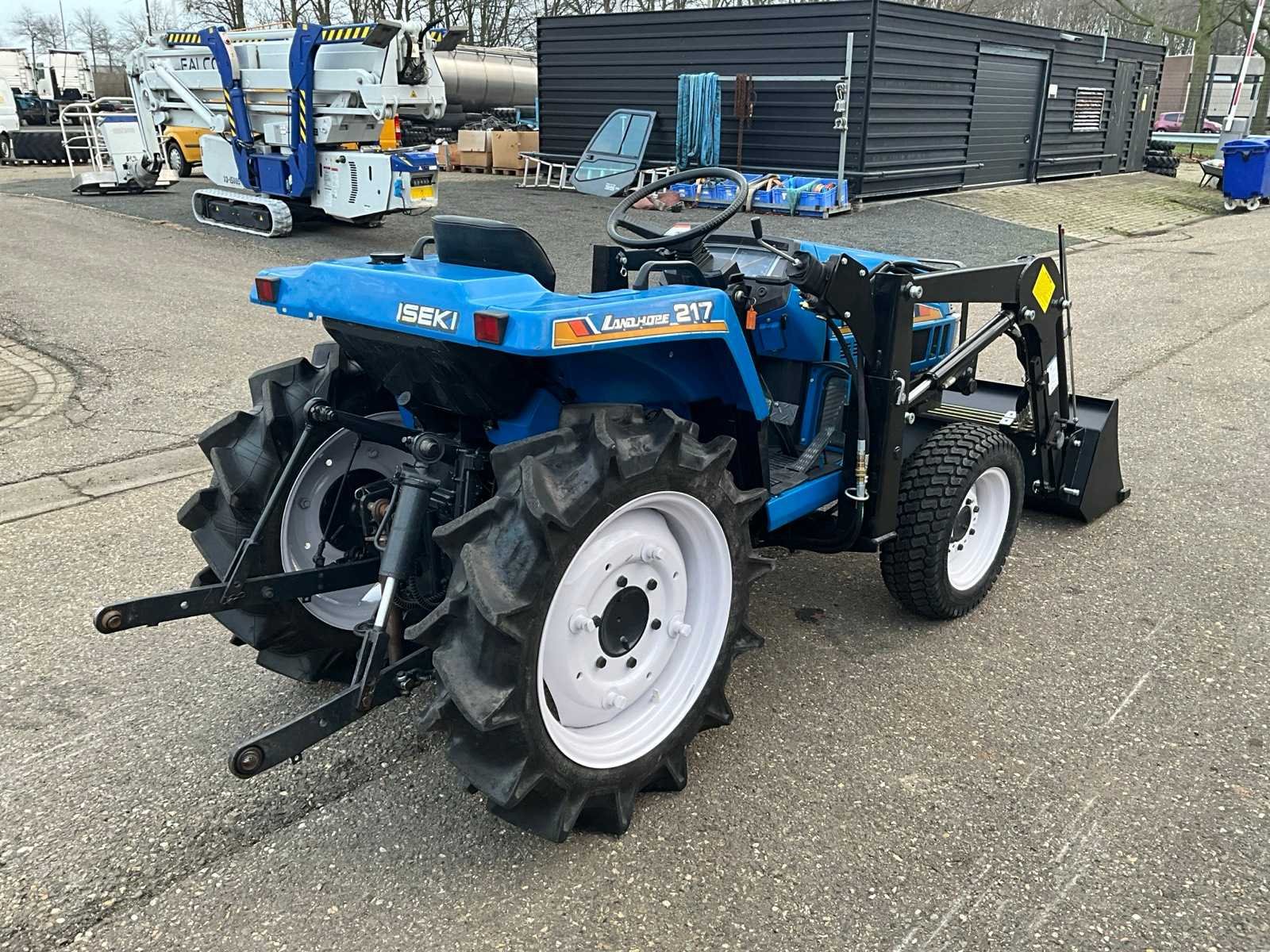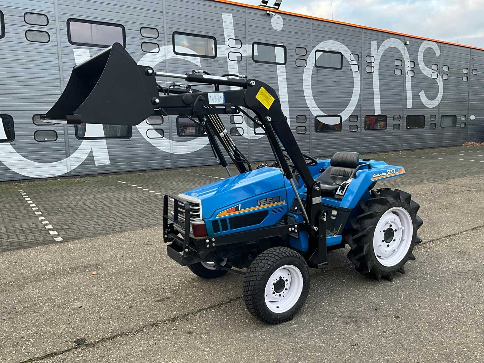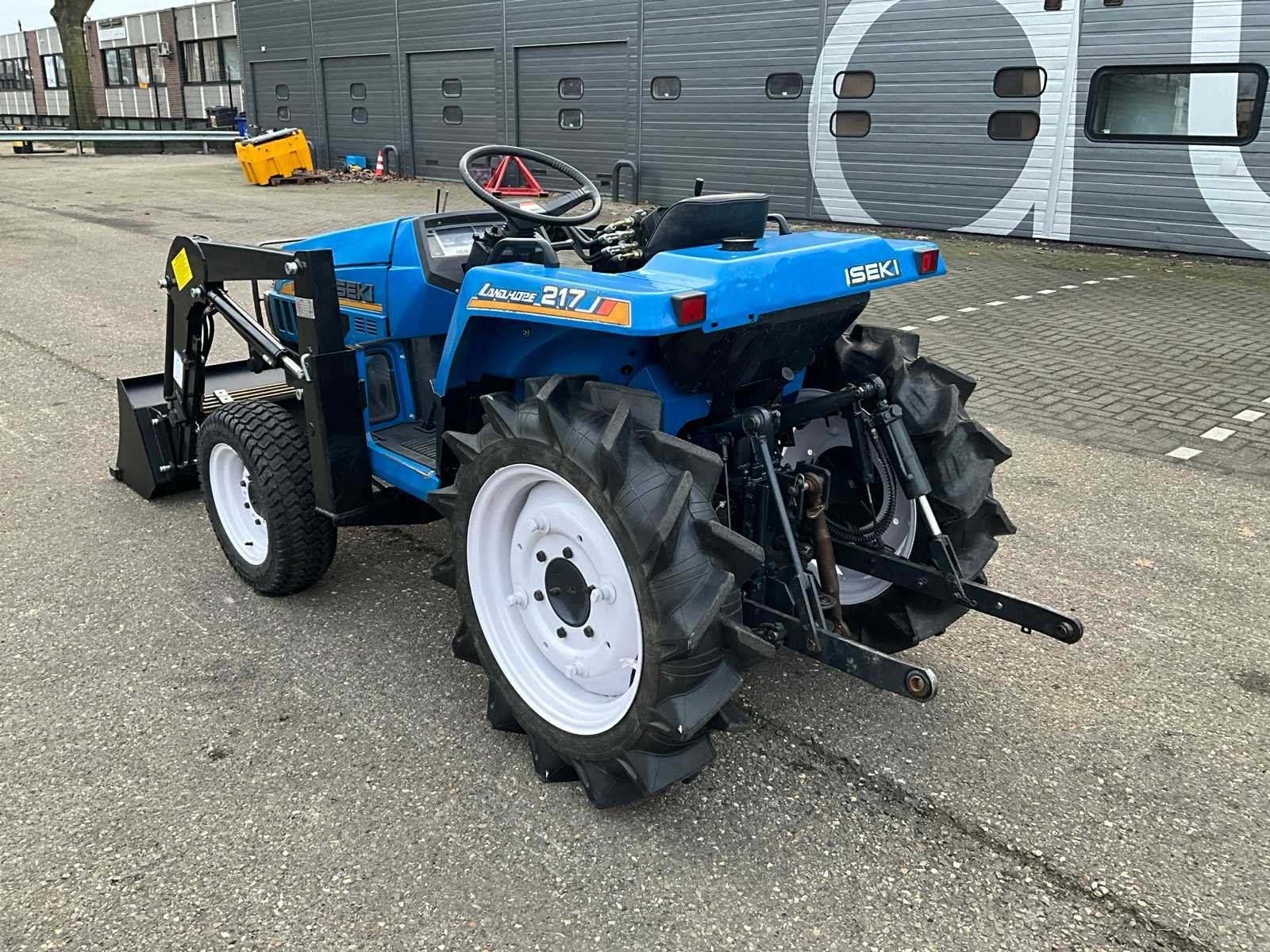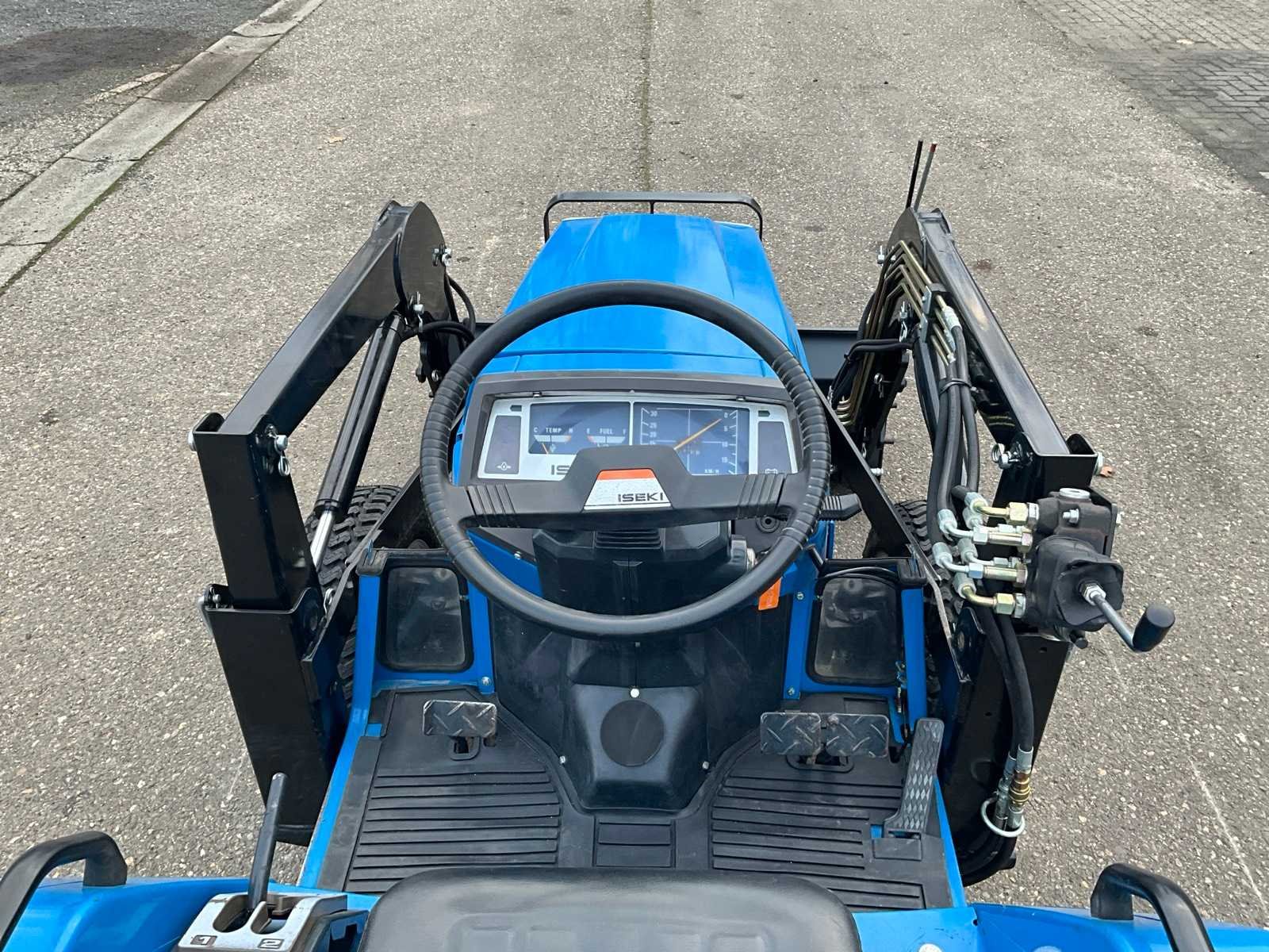 Afneembare voorlader met dichte bak 1250mm, gazonbanden voor, 3-cilinder Iseki dieselmotor, handgeschakeld ( niet alle versnellingen functioneren ), 3-standen PTO, 3-punt hefinrichting met topstang Nee Merk: Iseki Type: Landhope 217 Serienummer: 01359 Afgelezen urenstand: 1487 Versnellingsbaktype: Handgeschakeld Bandenmaat voor: 24x8.50-14 Bandenmaat achter: 8.3-22 Voorlader: true Totale afmeting L: 3900mm Totale afmeting Breedte: 1200mm Totale afmeting Hoogte: 1400mm