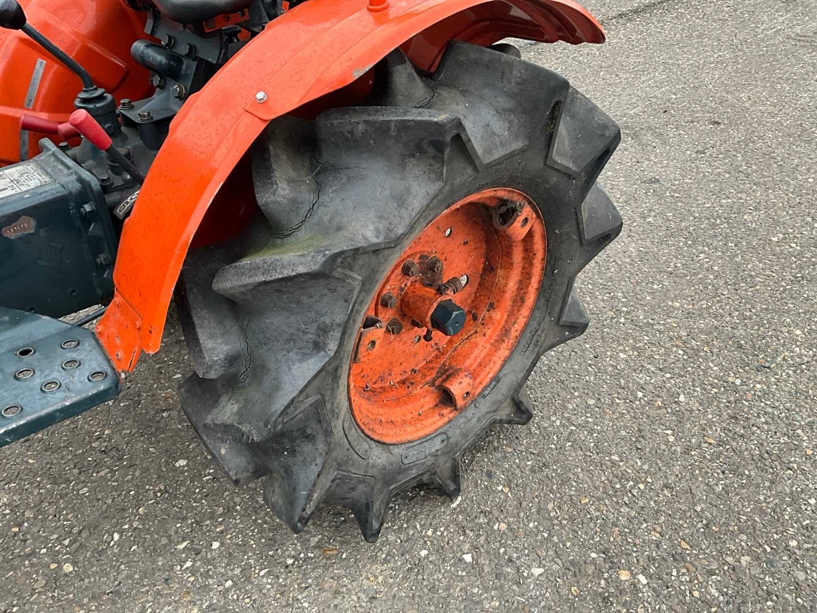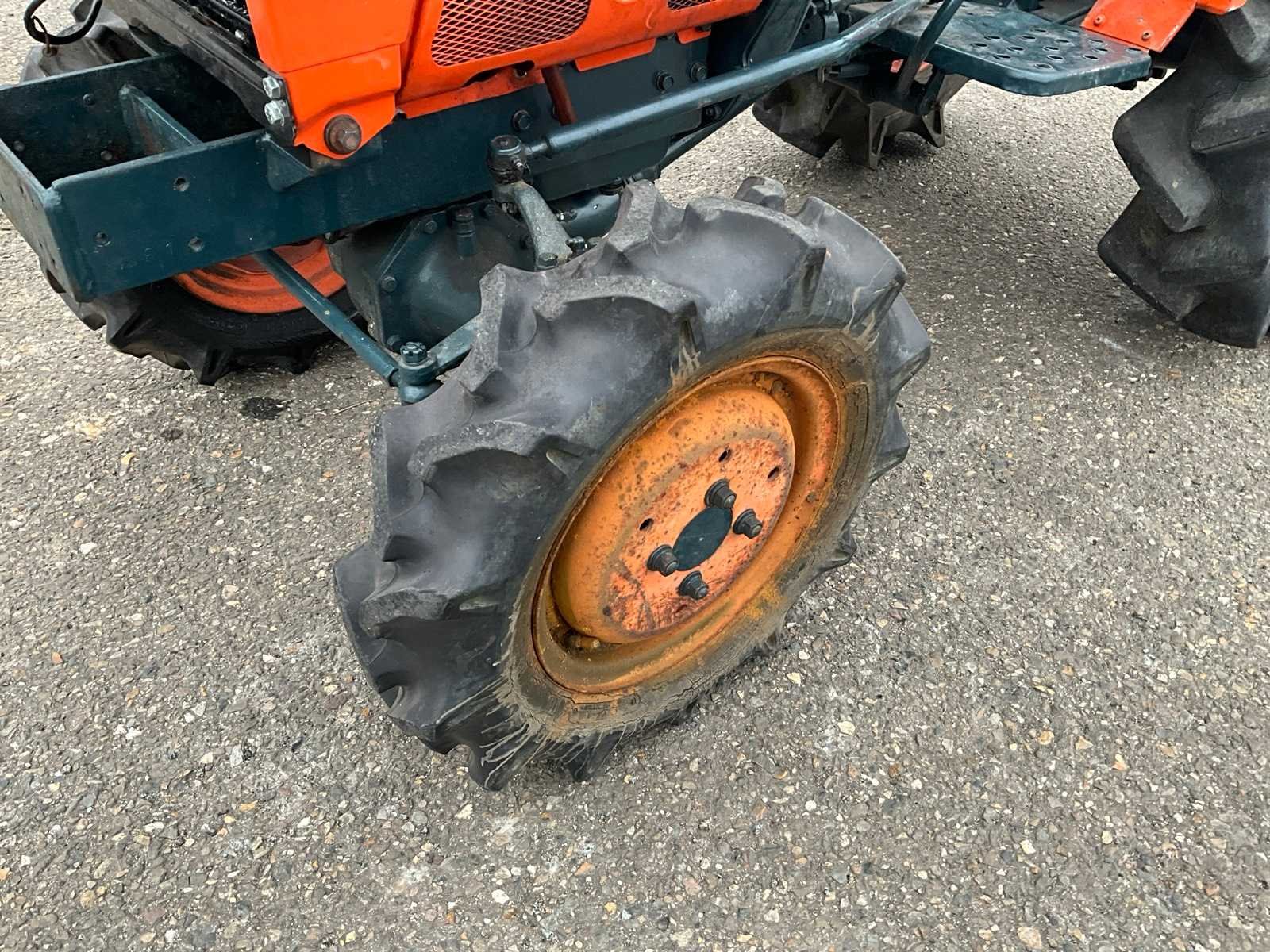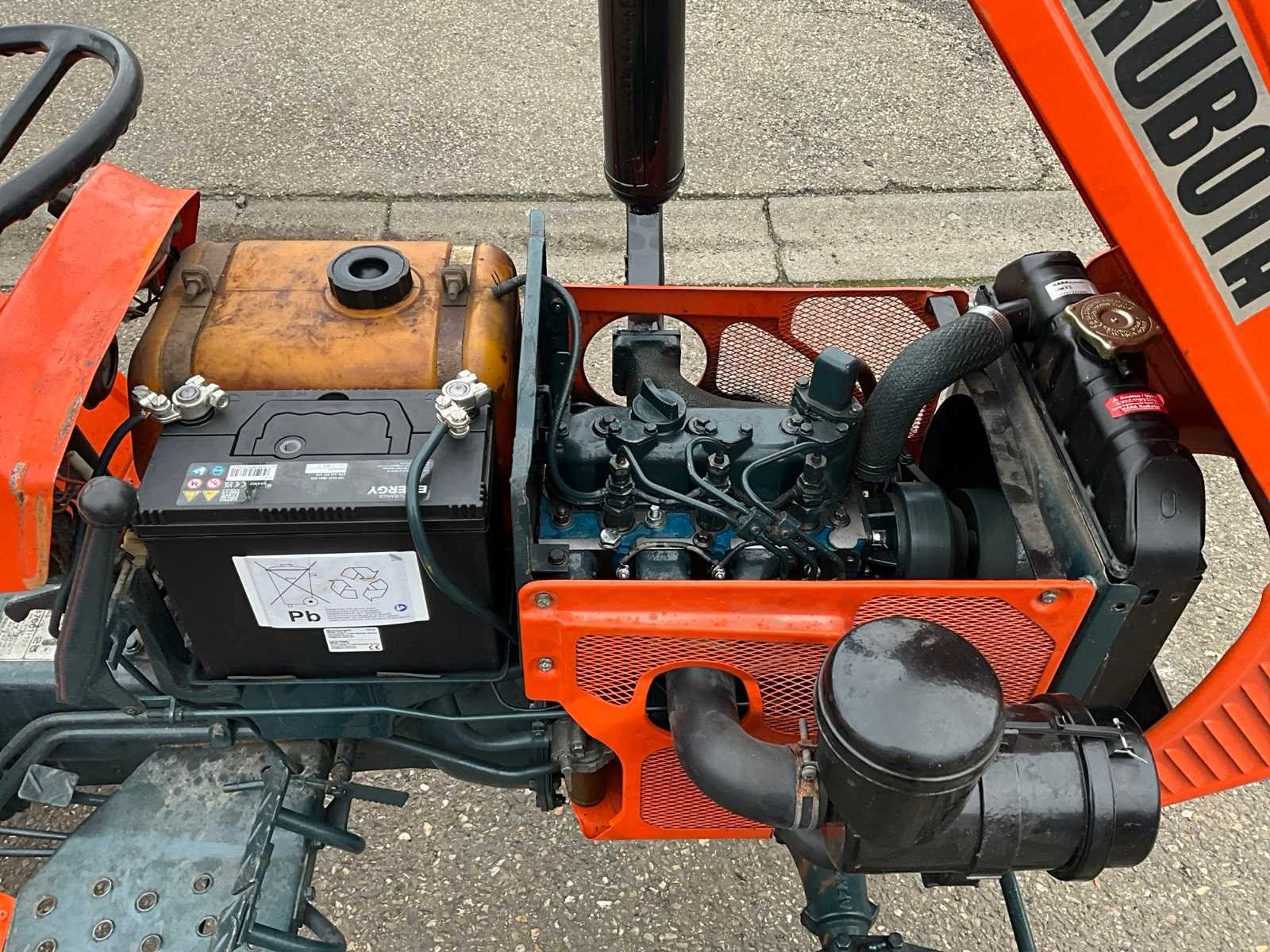 Kubota 3-cilinder diesel motor, handgeschakeld 6 versnellingen, 3-standen PTO, Nee Merk: Kubota Type: B7001 Serienummer: B7001-137855 Versnellingsbaktype: Handgeschakeld Bandenmaat voor: 5.00-12 Bandenmaat achter: 8-16 Totale afmeting L: 2200mm Totale afmeting Breedte: 1050mm Totale afmeting Hoogte: 1500mm