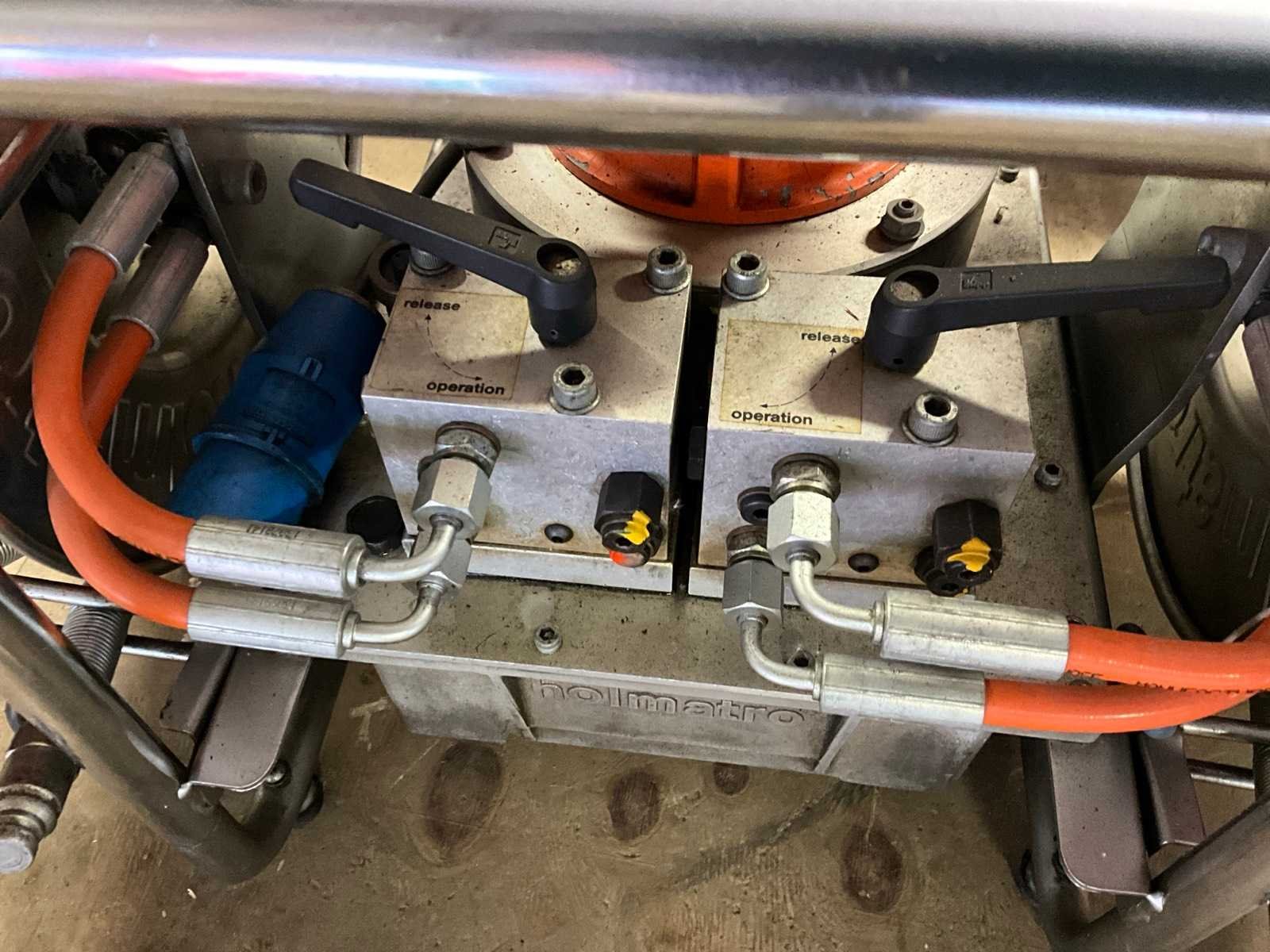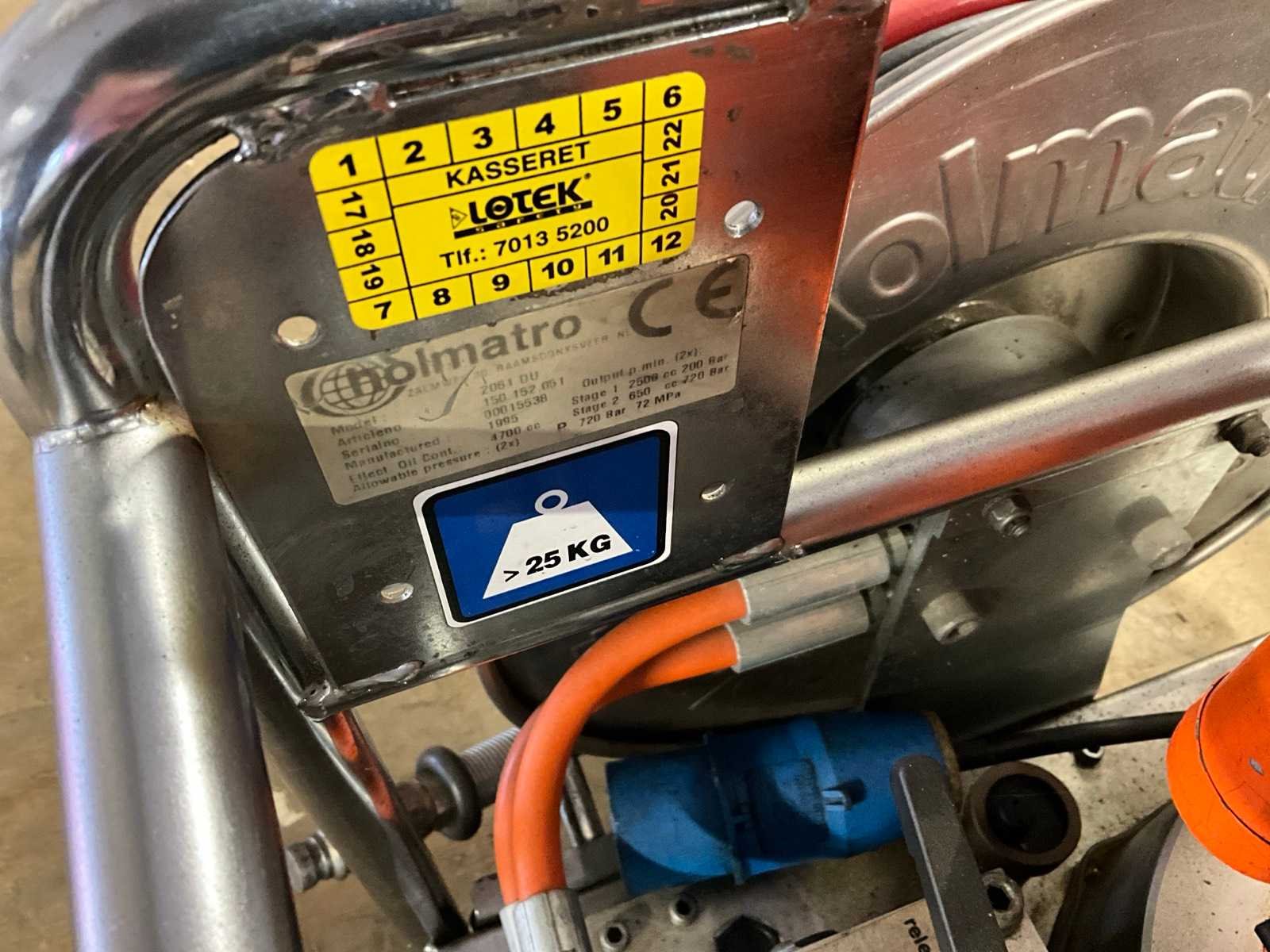 Voorzien van 2 slanghaspels met dubbele slang en snelkoppelingen Nee Merk: Holmatro Totale afmeting Breedte: 550mm Aansluiting: 230V Werkdruk: 720bar Type: 2061 DU Totale afmeting L: 800mm Totale afmeting Hoogte: 500mm