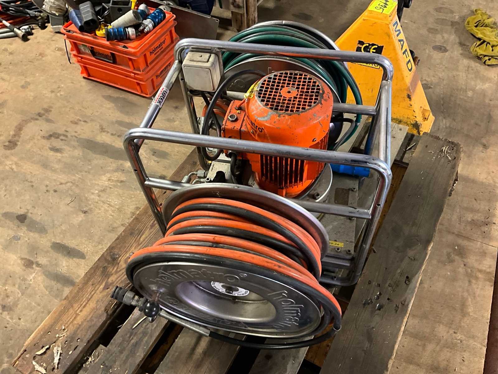 Voorzien van 2 slanghaspels met dubbele slang en snelkoppelingen Nee Merk: Holmatro Totale afmeting Breedte: 550mm Aansluiting: 230V Werkdruk: 720bar Type: 2061 DU Totale afmeting L: 800mm Totale afmeting Hoogte: 500mm