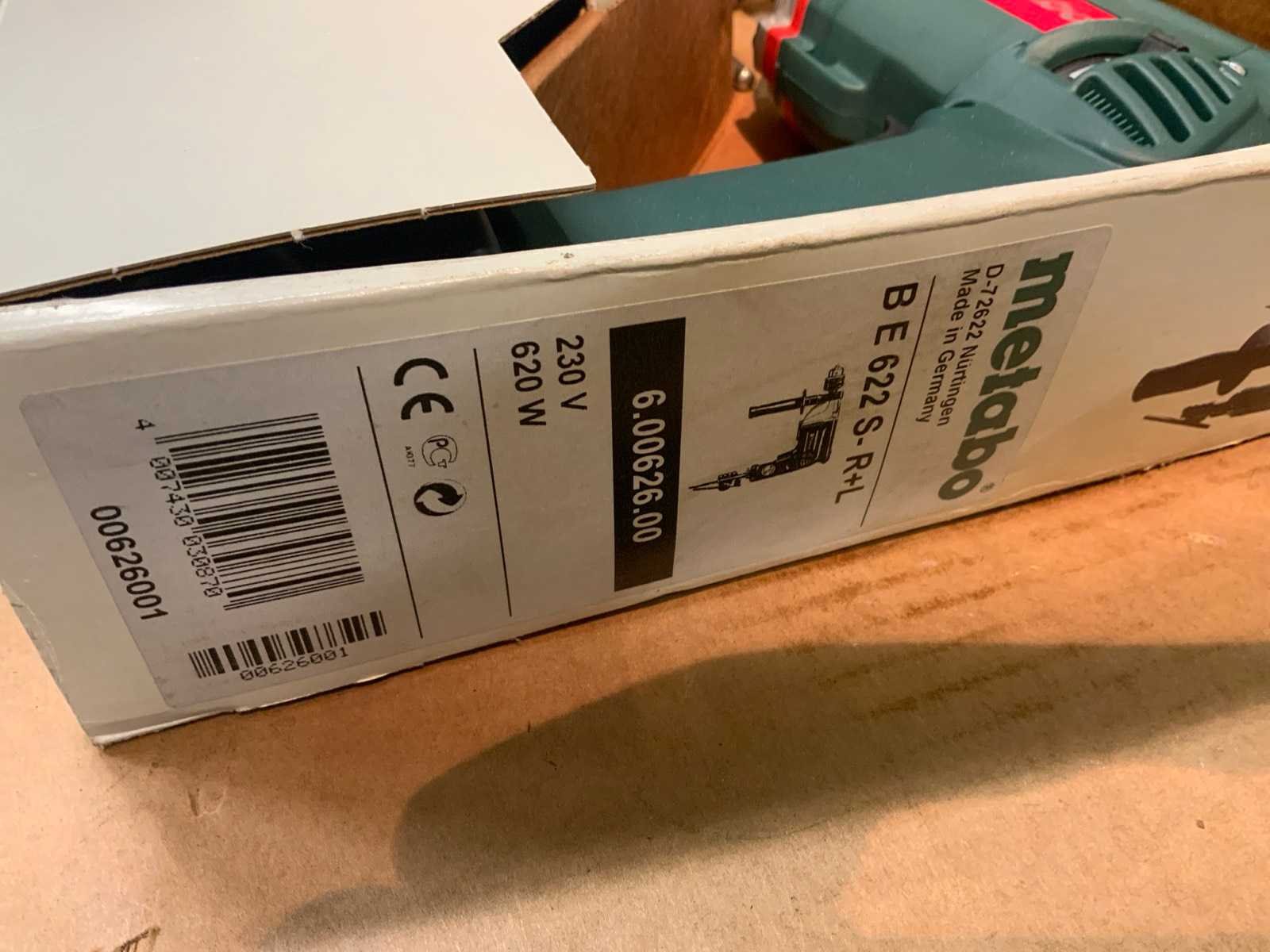 0- 550 omw/min ; met borendoos 1 t/ m 5,9 mm met 0,1 mm oplopend ; boormachine is ongebruikt Nee Merk: Metabo Type: BE 622 S-R+L Capaciteit.: 13mm Vermogen: 620W Aansluiting: 230V