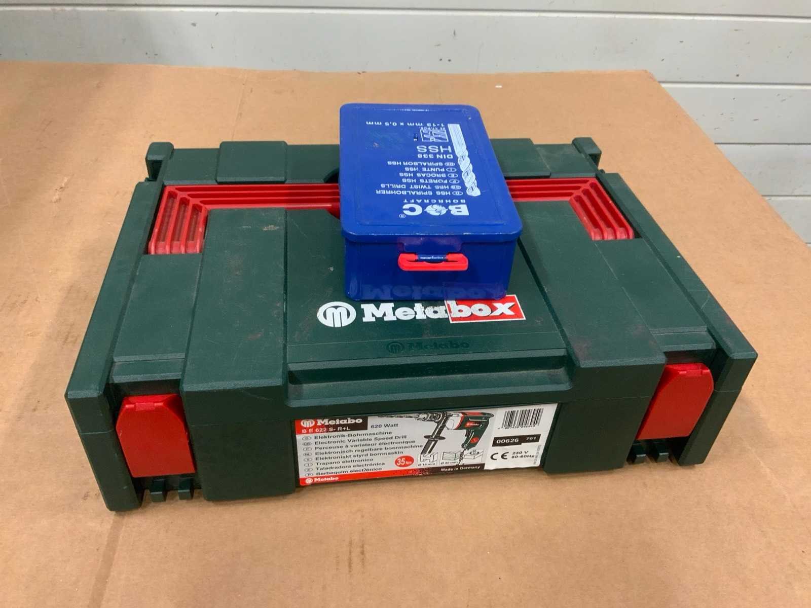 0- 550 omw/min ; met borendoos 1 t/ m 13 mm oplopend met 0,5 mm ; boormachine is nagenoeg ongebruikt ; in systener Nee Merk: Metabo Type: BE 622 S-R+L Capaciteit.: 13mm Vermogen: 620W Met koffer: true Aansluiting: 230V