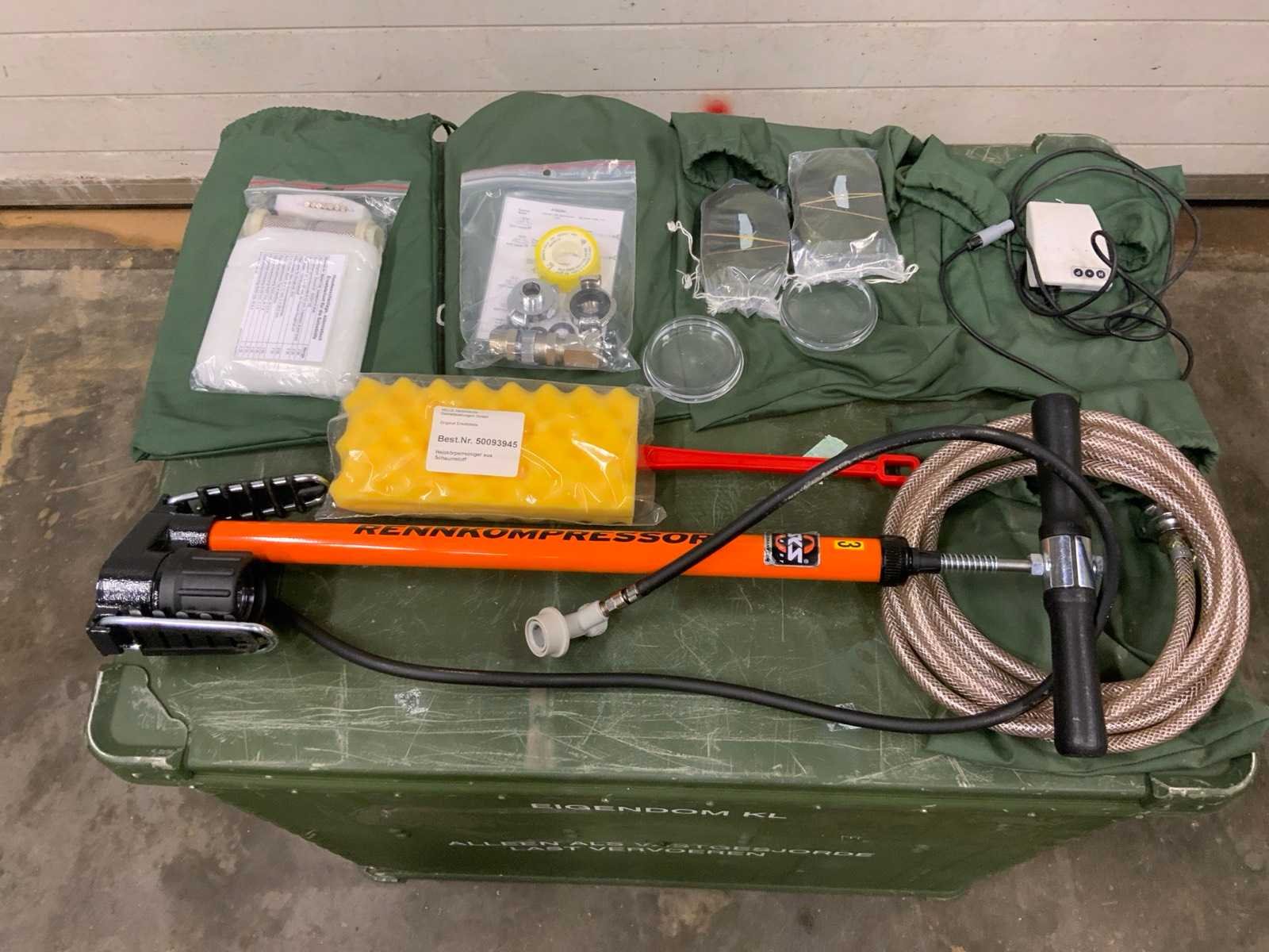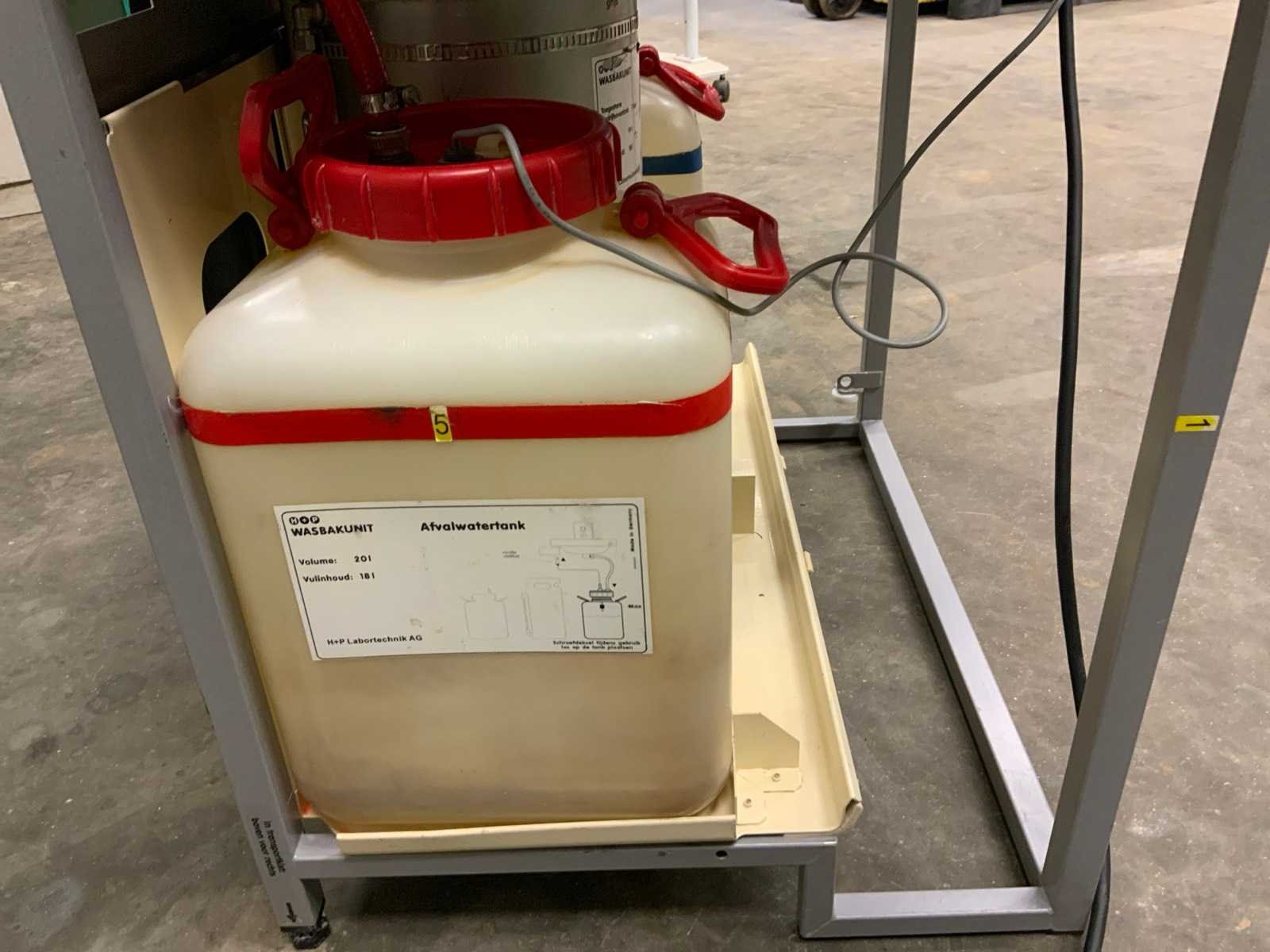 Wasbakunit in aluminium transportkist 83 x 61 x 76 cm ; met gebruiks aanwijzing en verpakkings instructie ; 230 volt ; bediening via sensor of voetpedaal ; 5 tasjes met o.a reservedelen Nee Merk: H+P Labortechnik AG Eigen gewicht: 70kg Totale afmeting L: 830mm Totale afmeting Breedte: 610mm Totale afmeting Hoogte: 760mm