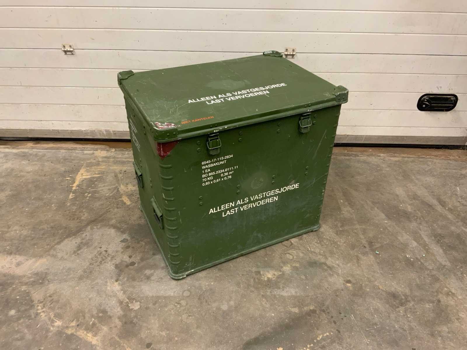 Wasbakunit in aluminium transportkist 83 x 61 x 76 cm ; met gebruiks aanwijzing en verpakkings instructie ; 230 volt ; bediening via sensor of voetpedaal ; 5 tasjes met o.a reservedelen Nee Merk: H+P Labortechnik AG Eigen gewicht: 70kg Totale afmeting L: 830mm Totale afmeting Breedte: 610mm Totale afmeting Hoogte: 760mm